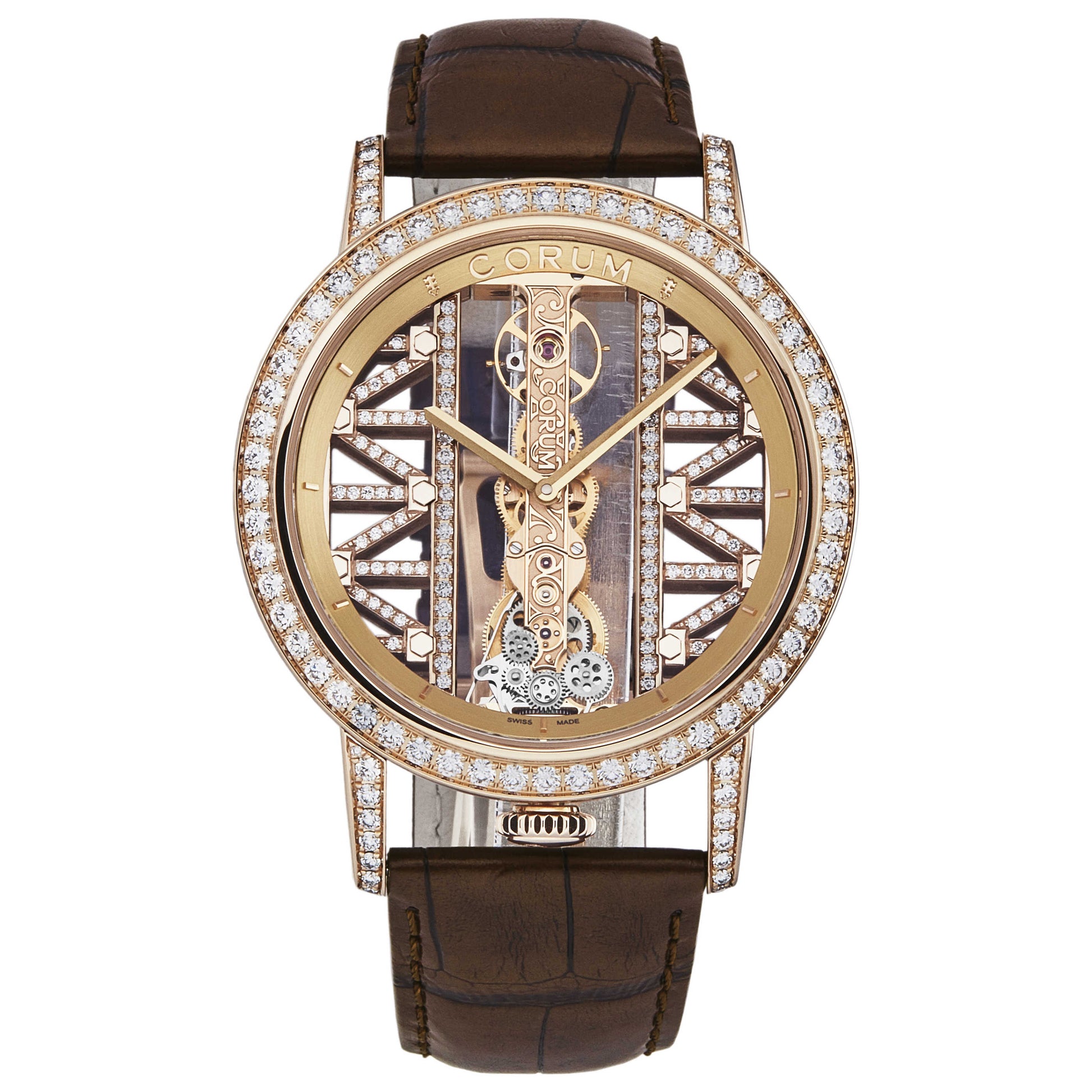 Corum, Golden Bridge, Men's Watch, 18K Rose Gold Case, Leather Strap, Manual-Wind, B113/03090