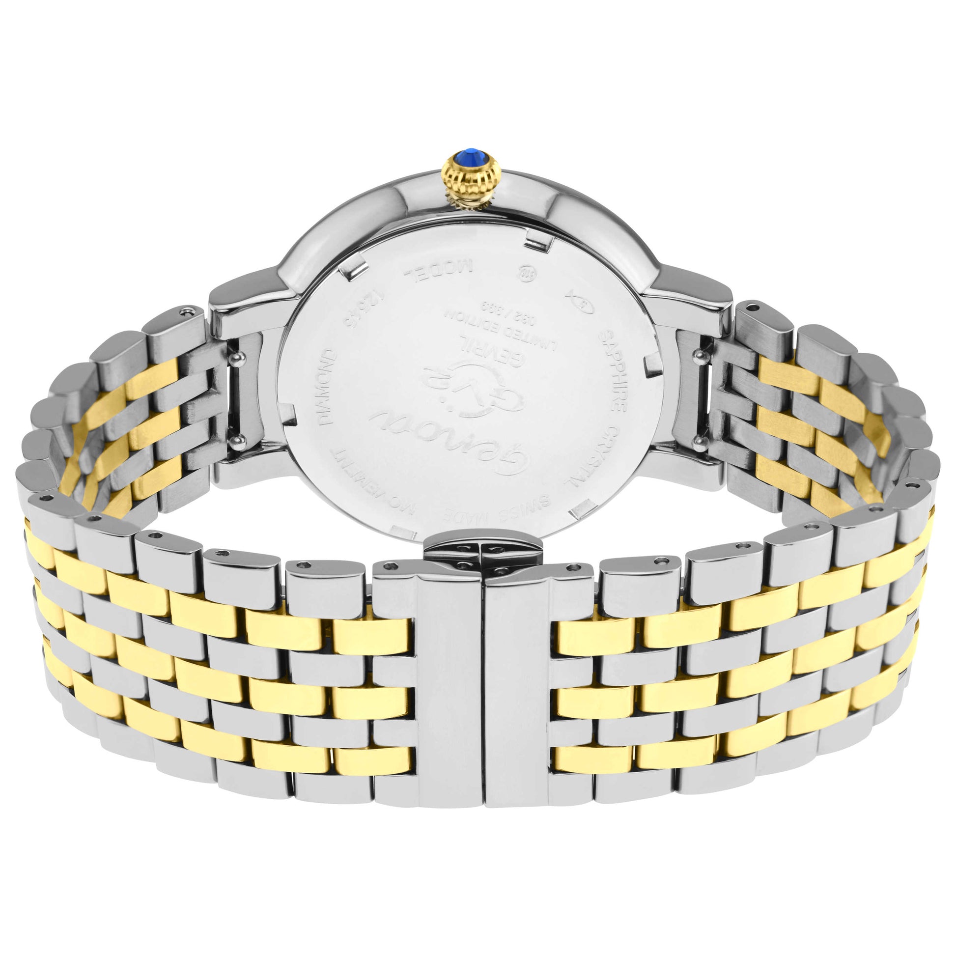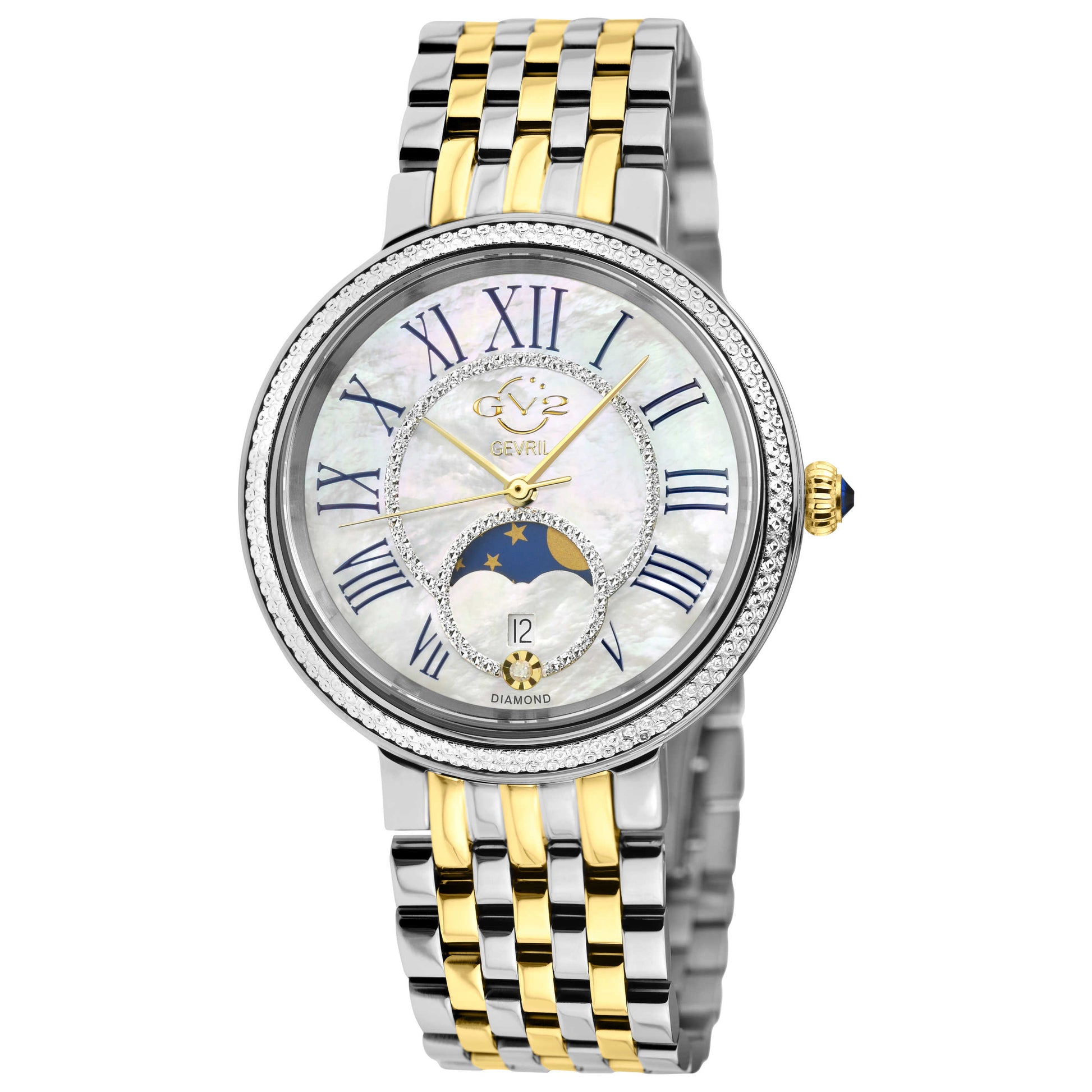 GV2 by Gevril's Genoa collection brings sophistication directly to your wrist. This Swiss-made women's watch combines functionality with aesthetics, featuring a quartz movement and a scratch-resistant sapphire crystal with anti-reflective properties. Encased in stainless steel with a dual-tone silver and gold bracelet and a deployment clasp, it is water-resistant up to 50m. The white mother-of-pearl dial and round 37mm case enhance its classic allure, making it a reliable and stylish choice for any occasion. 12545B