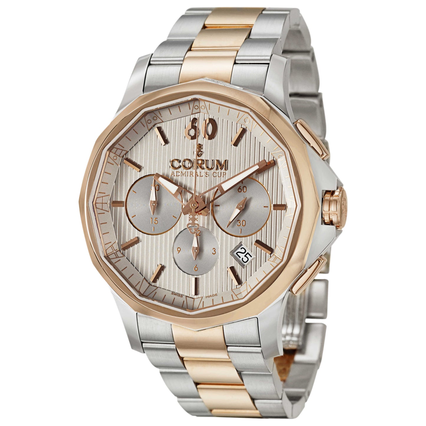 Corum, Admiral's Cup Legend 42 Chrono, Men's Watch, 18K Rose Gold and Stainless Steel Case, 18K Rose Gold and Stainless Steel Bracelet, Swiss Mechanical Automatic (Self-Winding), 984-101-24-V705-FH11