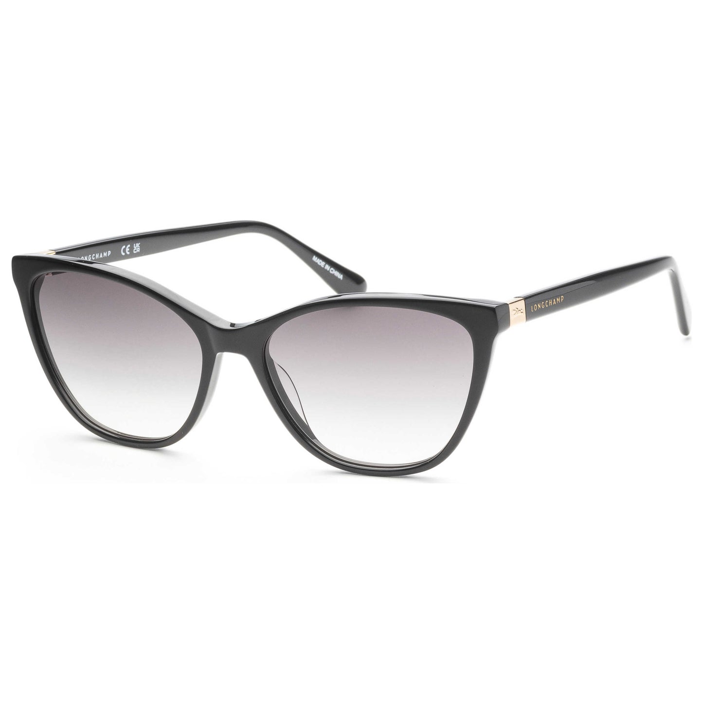 Embrace the chic style of Longchamp women's sunglasses. Crafted with a black acetate cat-eye frame, these sunglasses feature grey gradient lenses with 57 mm lens width, ensuring 100% UV protection. Perfect for a refined yet protective look. LO659S-001
