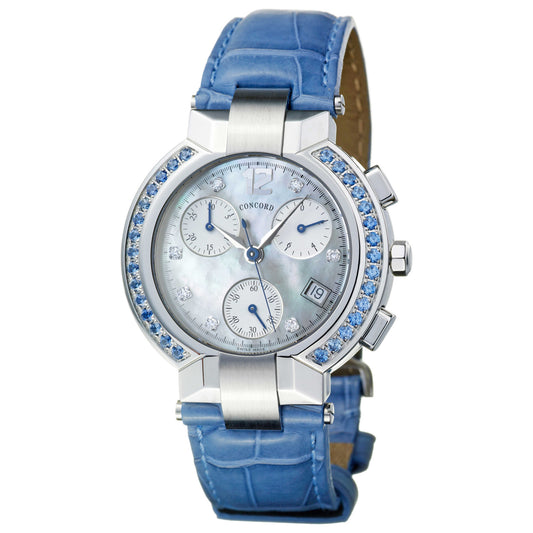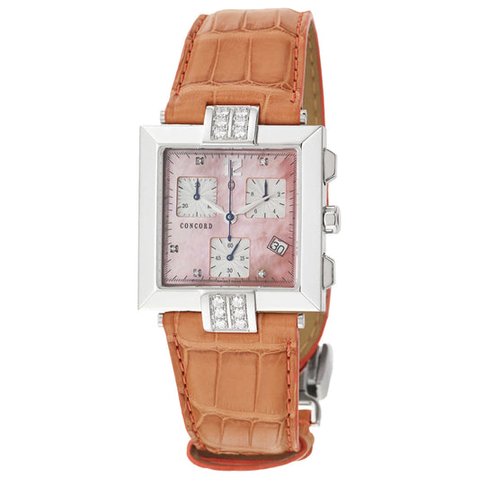 Vendor:ConcordLa Scala Swiss Quartz (Battery-Powered) White Mother-of-Pearl and Diamond Pave Women's Watch 0308933
