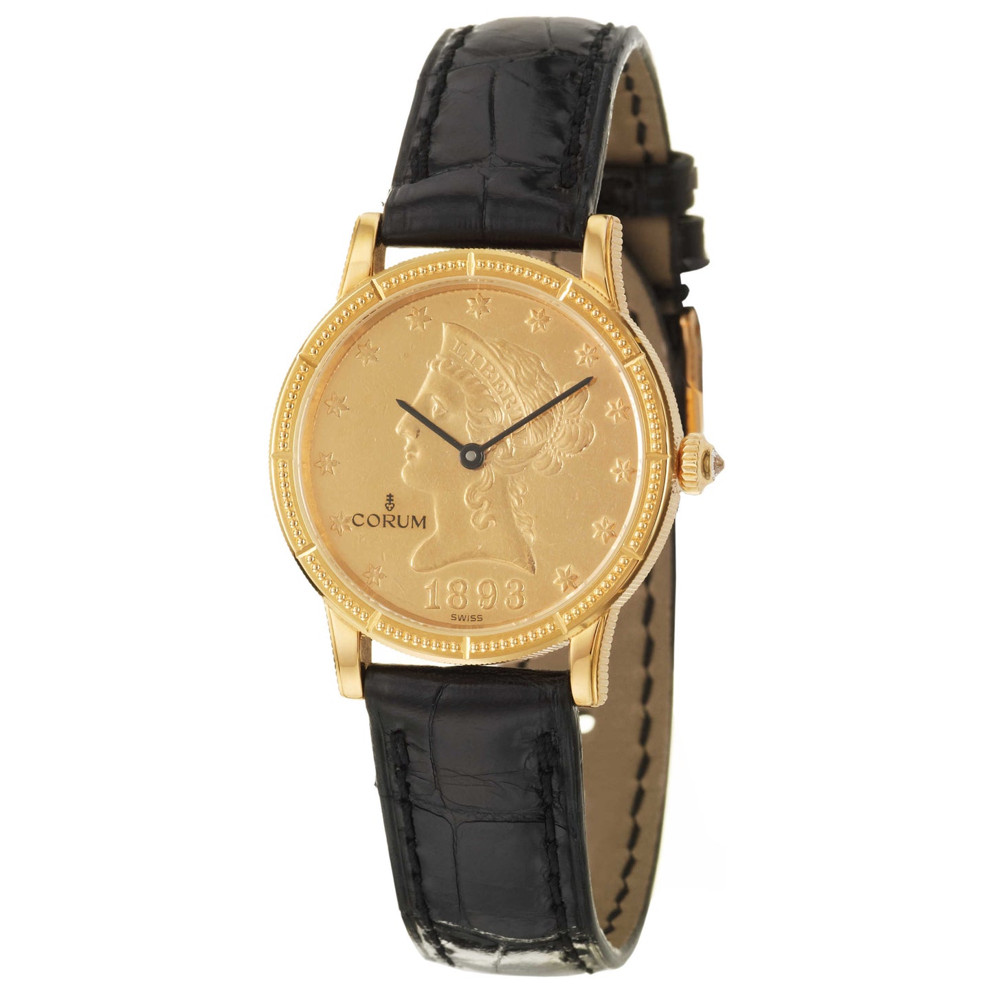 Corum, Coin, Women's Watch, 18K Yellow Gold Case, Leather Crocodile Strap, Swiss Quartz (Battery-Powered), 049-357-56-0081-MU36