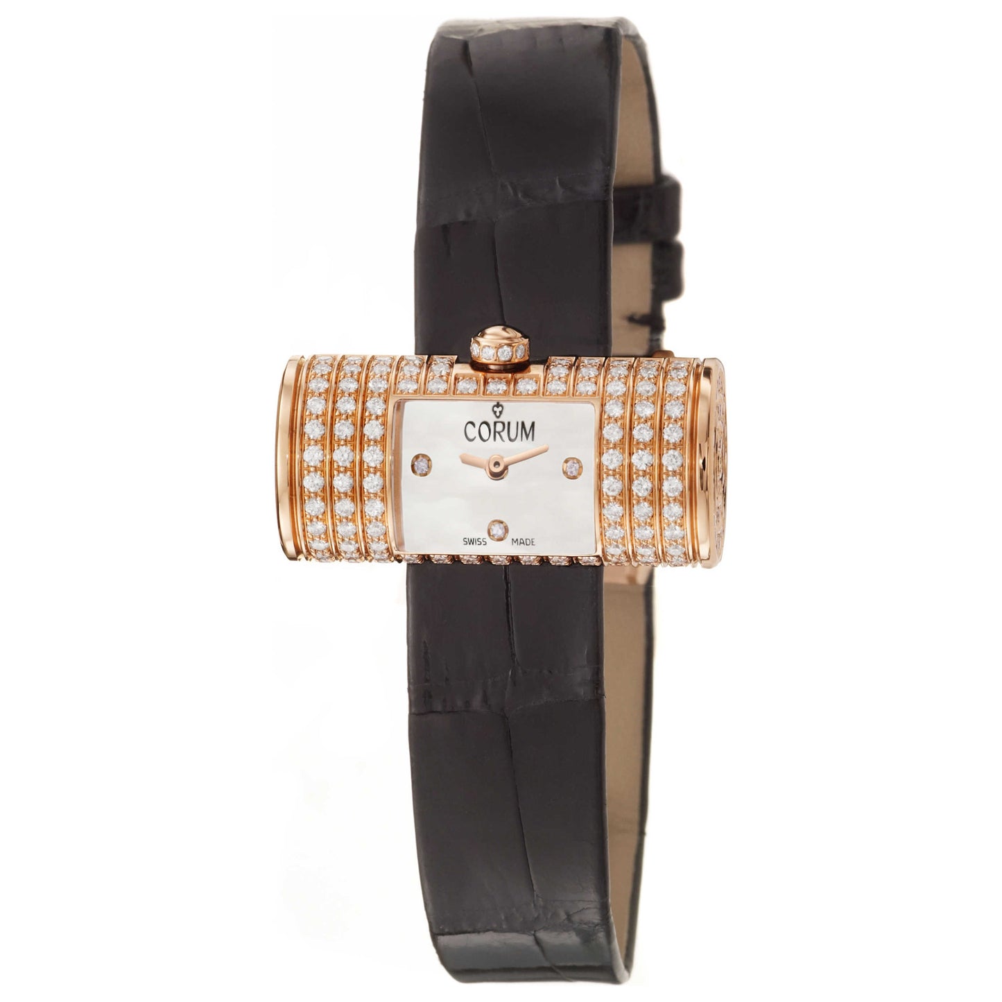 Corum, Golden Tube, Women's Watch, 18K Rose Gold and Diamonds Case, Leather Alligator Strap, Swiss Quartz (Battery-Powered), 137-801-85-0081-PN01