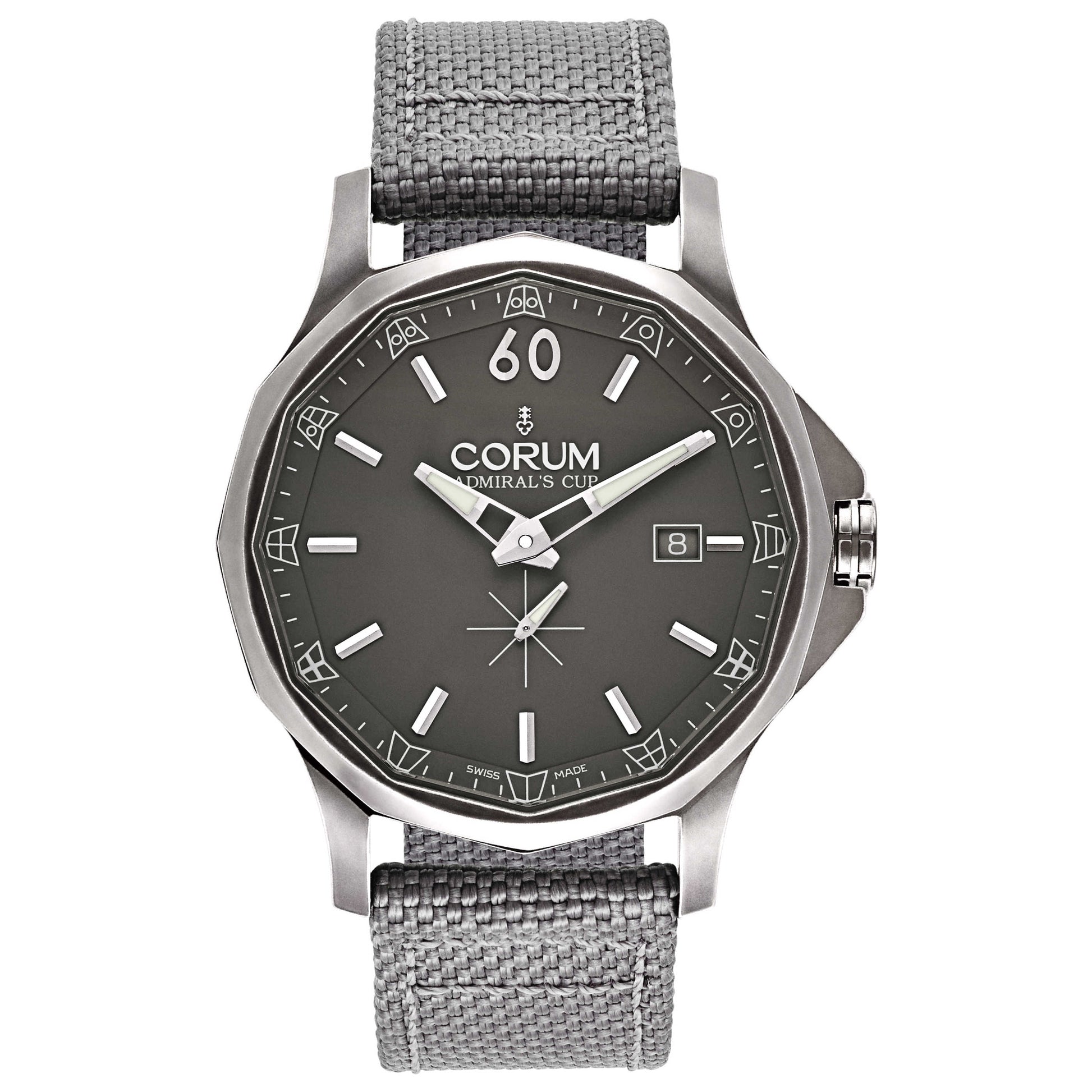 Corum, Admiral's Cup Legend 42, Men's Watch, Stainless Steel Gray PVD Coated Case, Fabric Strap, Swiss Mechanical Automatic (Self-Winding), 395-119-98-0619-AG19