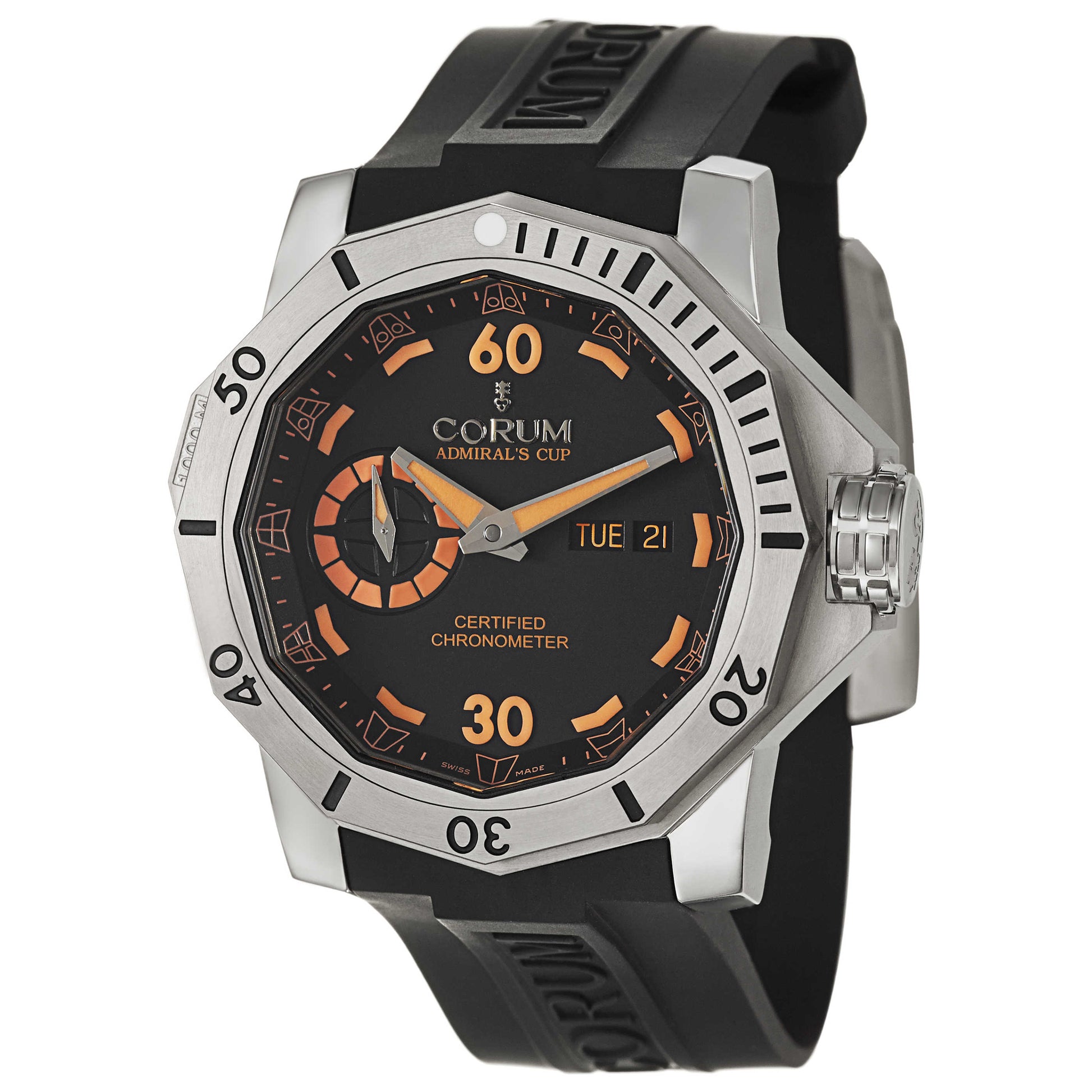 Corum, Admiral's Cup Seafender 48 Deep Dive, Men's Watch, Stainless Steel Case, Rubber Strap, Swiss Mechanical Automatic (Self-Winding) Certified Chronometer, 947-950-04-0371-AN15