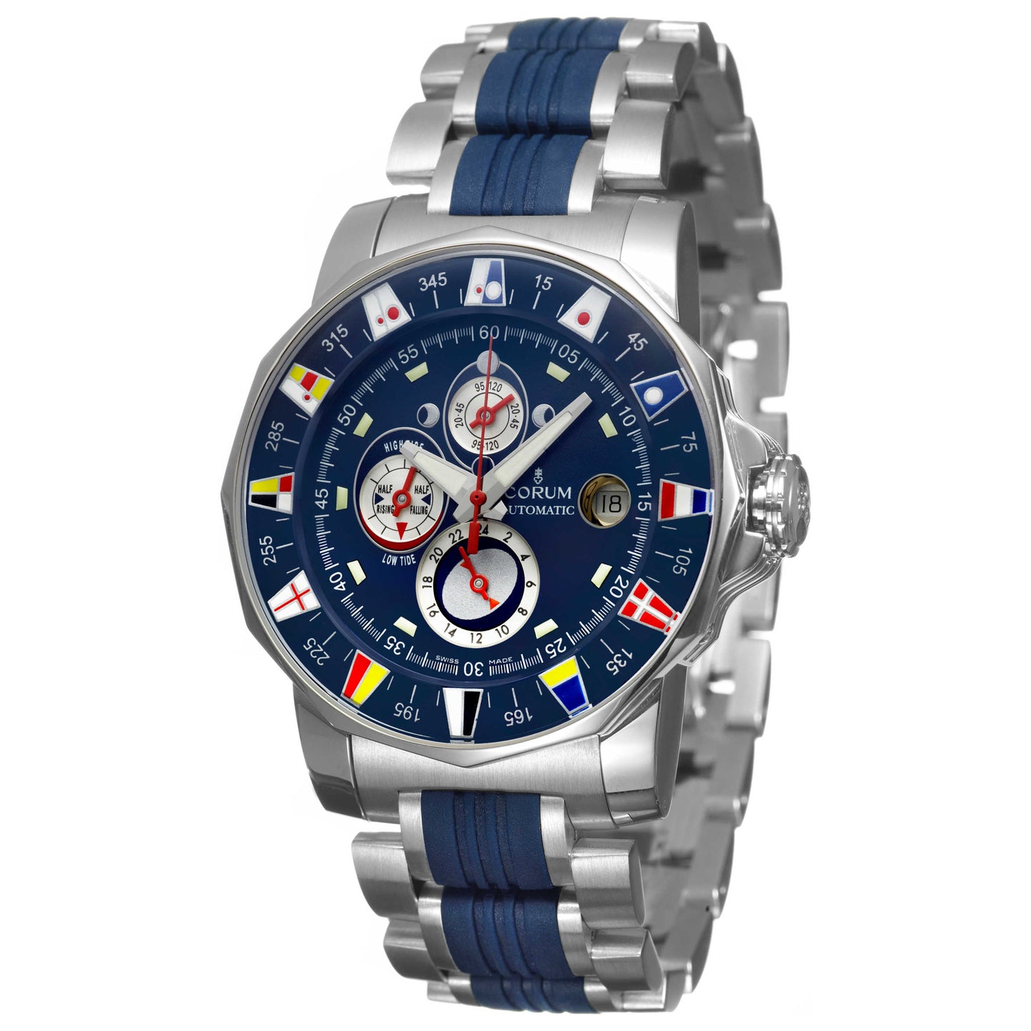Corum, Admiral's Cup Tides, Men's Watch, 18K White Gold Case, 18K White Gold and Rubber Bracelet, Mechanical Automatic Self-Winding Swiss Movement, 977-633-59-V793-AB32