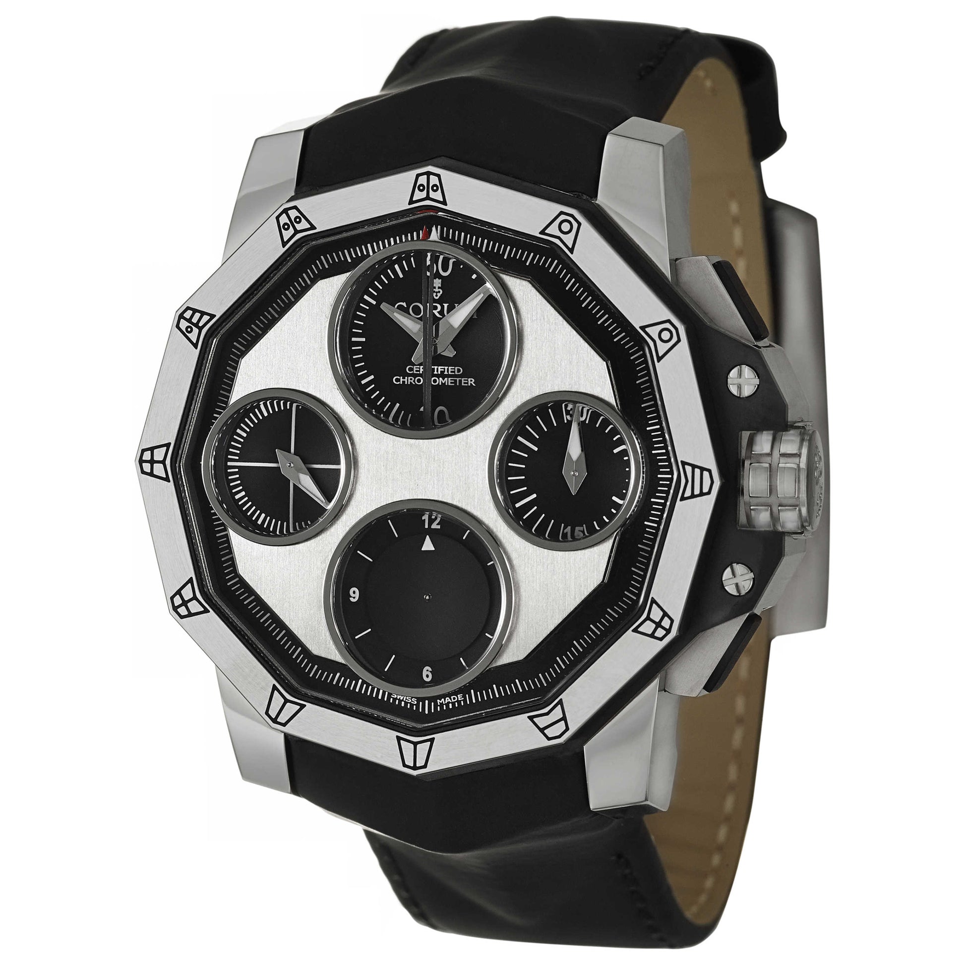 Corum, Admiral's Cup Seafender 48 Off-Center, Men's Watch, Stainless Steel and Titanium Case, Leather Strap, Swiss Mechanical Automatic (Self-Winding) Certified Chronometer, 987-980-04-0061-AN04