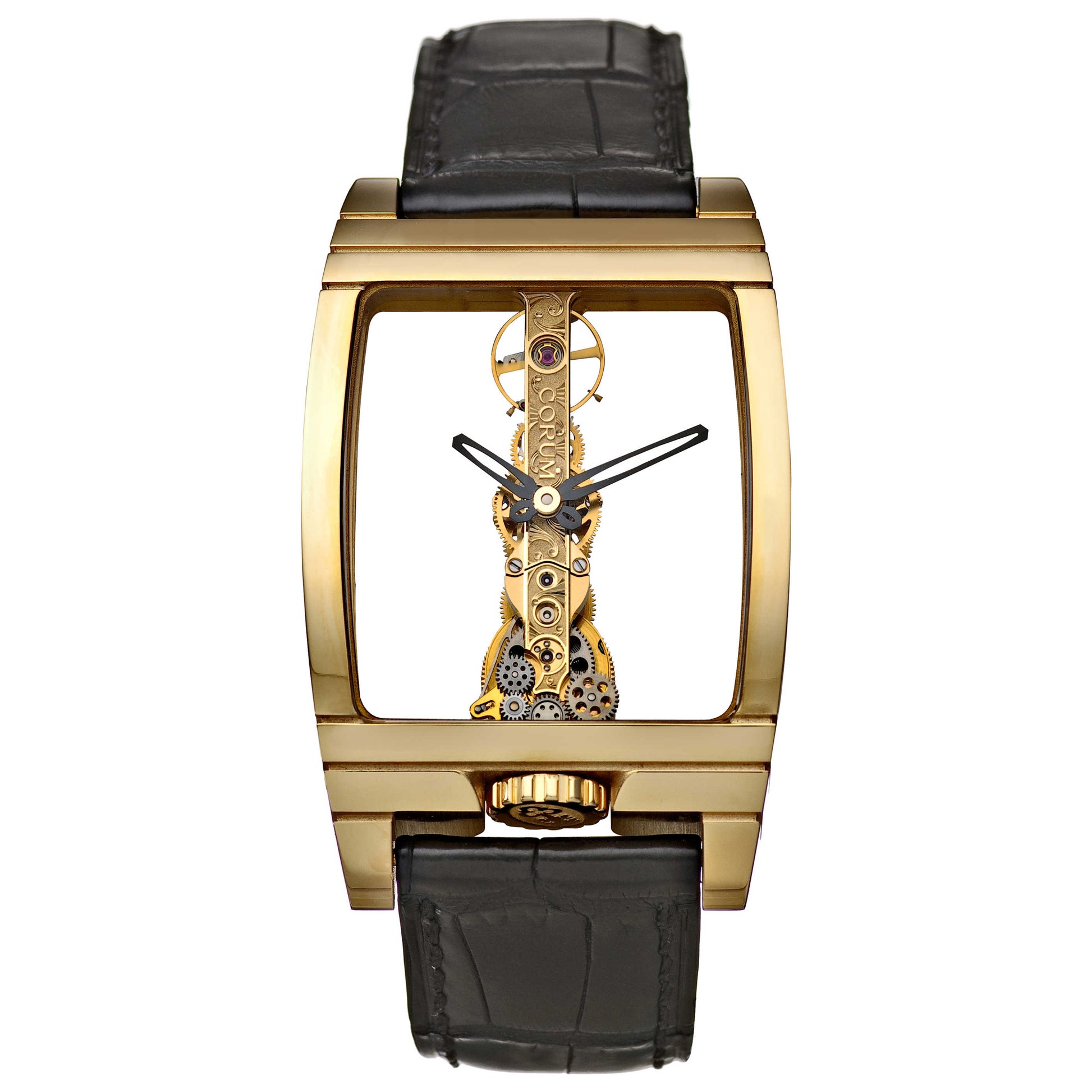 Corum, Golden Bridge, Men's Watch, 18K Yellow Gold Case, Leather Crocodile Strap, Mechanical Manual Hand-Winding Movement Swiss Made, 113-550-56-00010000J