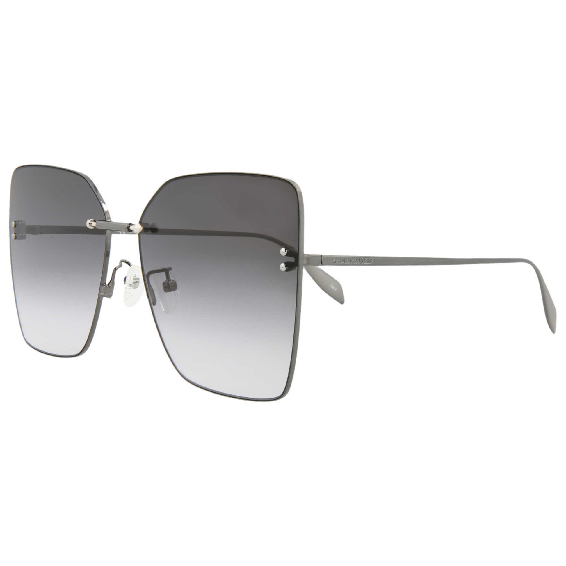 Crafted for the fashion-forward, these Alexander McQueen sunglasses feature a ruthenium metal frame and grey gradient lenses. With a lens width of 63 mm and arm length of 150 mm, they combine style with functionality. Experience luxurious comfort and flair, proudly made in Italy. AM0342S-30011499-001