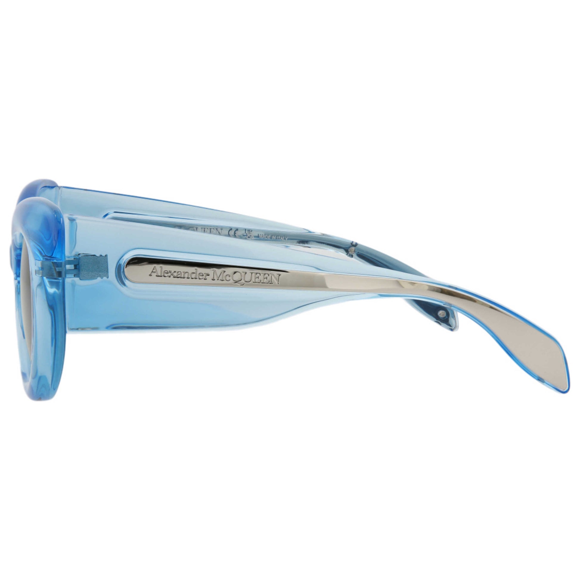 Turn heads with the Alexander McQueen women's sunglasses. These light blue plastic frames feature blue lenses, providing a stylish flair while ensuring optimal visibility. Crafted in Italy with a lens width of 52 mm and arm length of 145 mm, these sunglasses promise comfort and a striking visual impact wherever you go. AM0403S-30014344-004