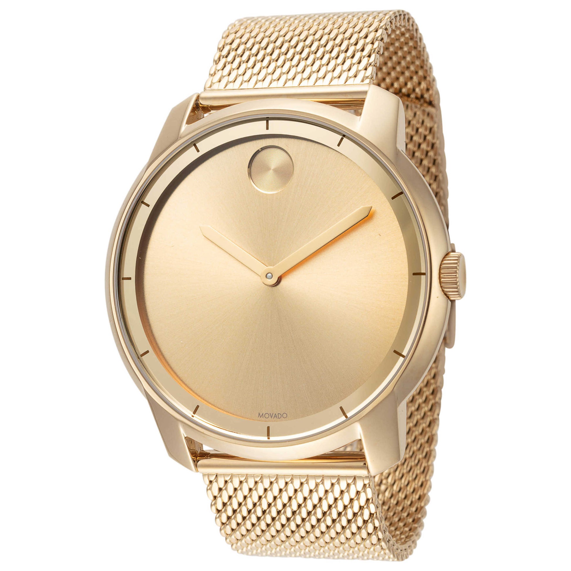 Experience the perfect blend of sophistication and bold design with the Movado Bold men's watch, made in Switzerland. This Swiss-made quartz movement timepiece is enclosed in a gold tone, round 44mm stainless steel case, protected by a durable mineral crystal. It features a pull and push crown, and an impressive water resistance of up to 30m. The gold dial harmonizes impeccably with the gold stainless steel bracelet, completing the opulent aesthetic. The bracelet secures effortlessly with a deployment clasp, ensuring a fit as comfortable as it is stylish. 3600373