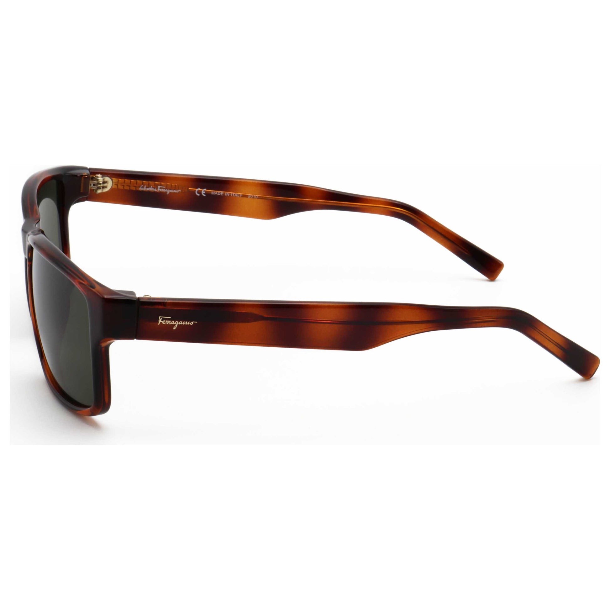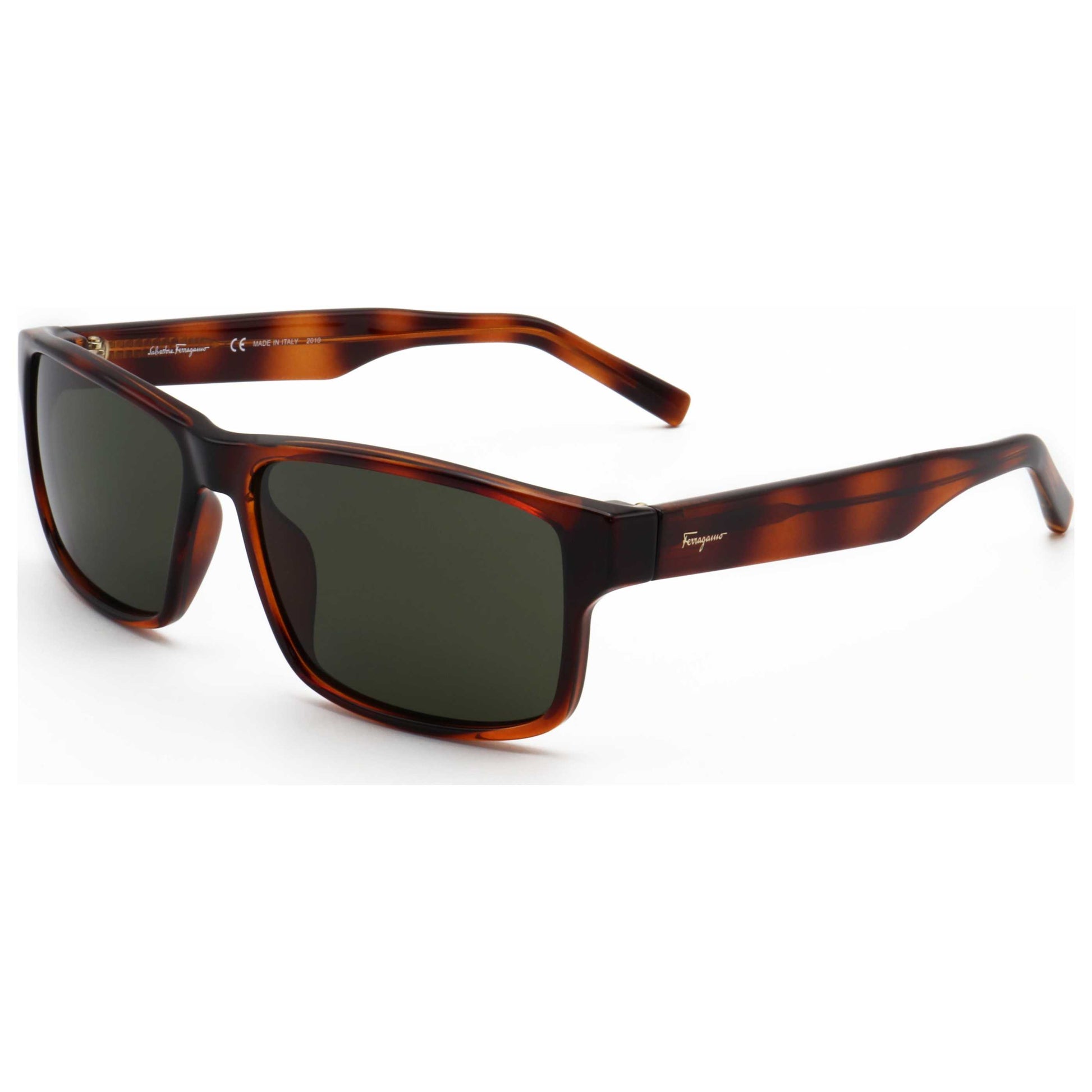 From the luxurious world of Ferragamo comes this stunning pair of women's sunglasses. Crafted from durable plastic with a classic rectangular frame in tortoise and equipped with green lenses offering 100% UV protection. Perfect for those sunny days, these sunglasses blend Italian craftsmanship with functional style, ensuring complete protection and a timeless look. SF960S-214