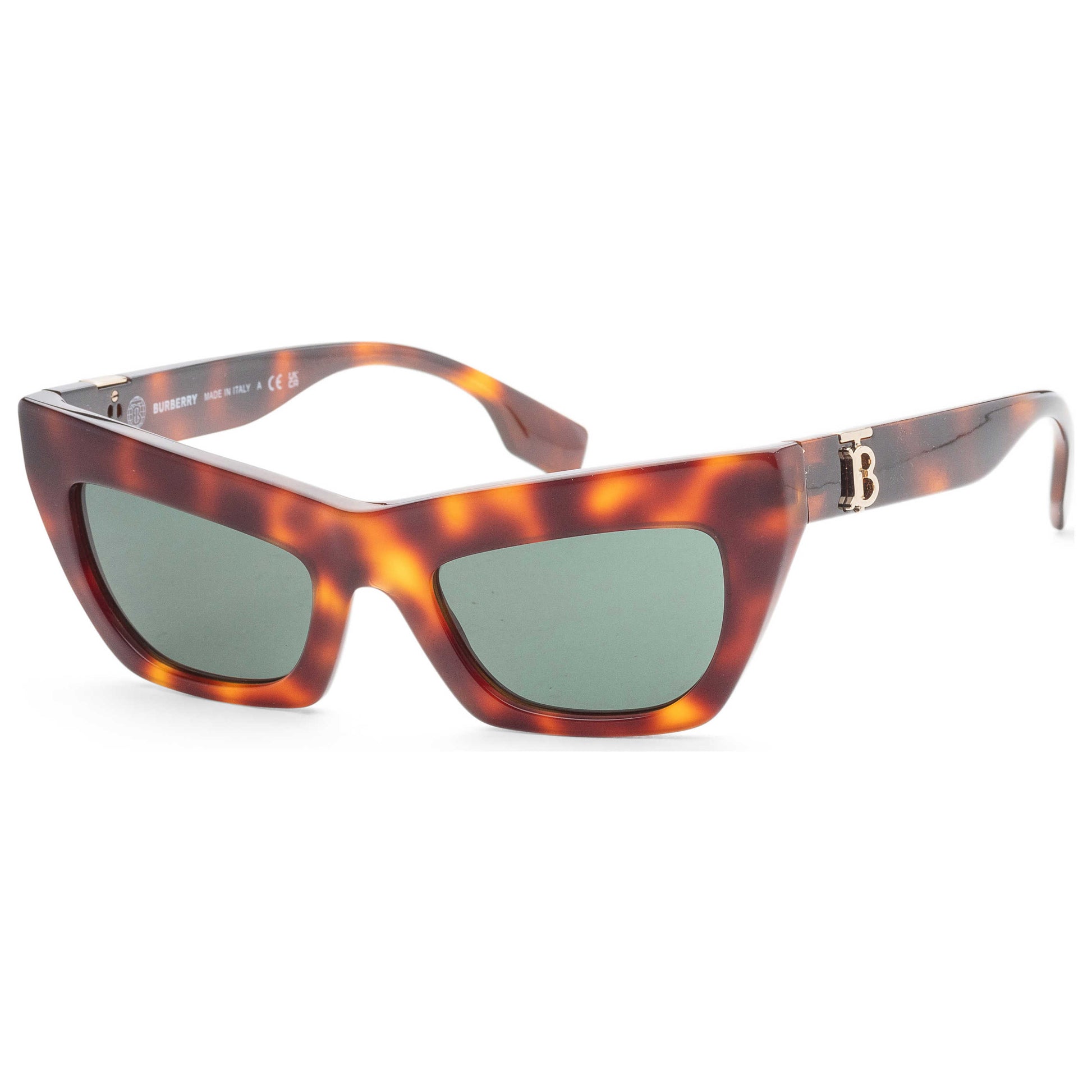 Immerse yourself in the luxury of Burberry with these women's sunglasses, elegantly crafted in Italy. The acetate cat-eye frames come in a chic Light Havana color, complemented by 51mm dark green lenses that offer 100% UV protection. Surrender to the allure of Burberry and protect your eyes in style. BE4405-331671-51