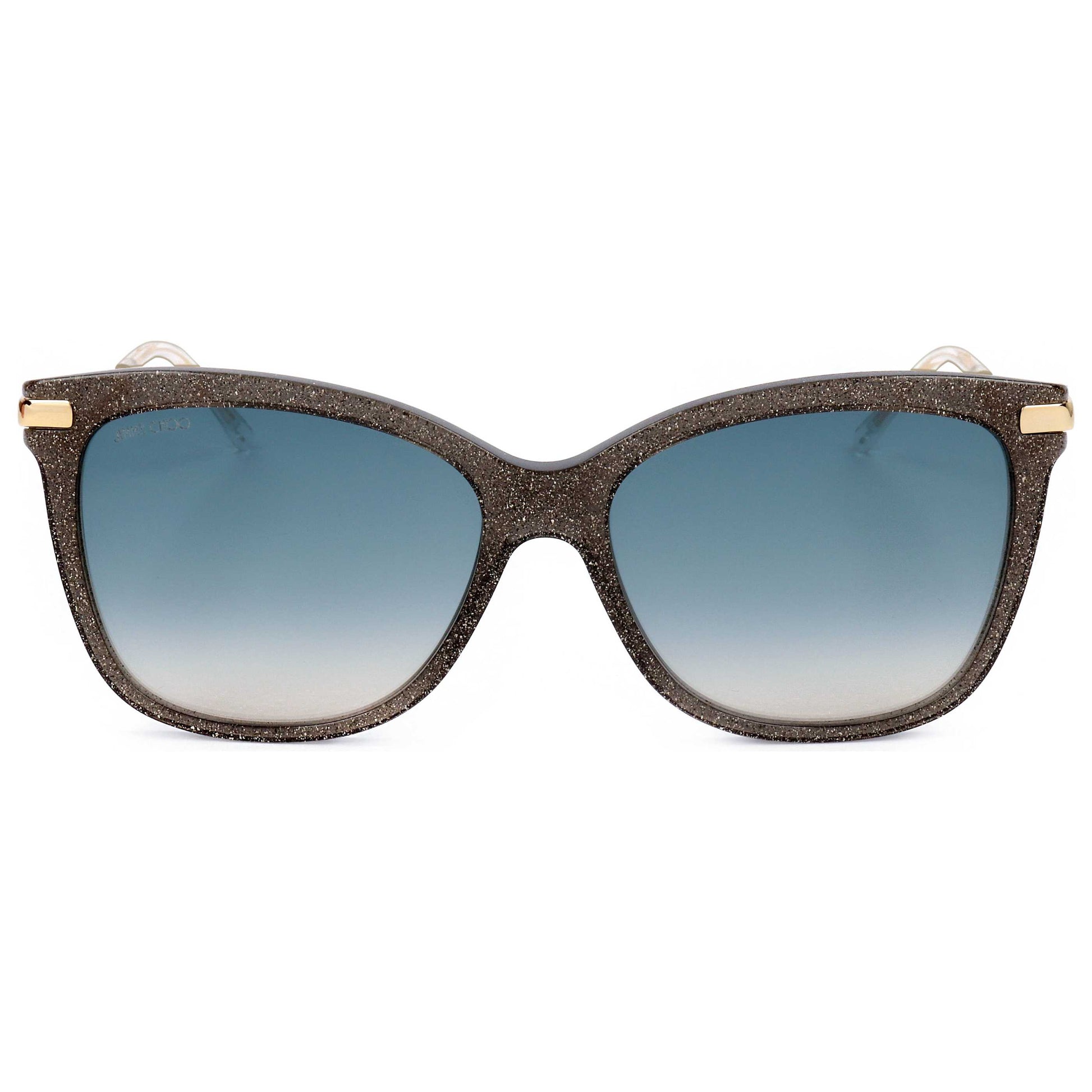 Savor Italian style with the Jimmy Choo Steff women's sunglasses. These chic grey plastic frames sport square blue lenses with a 55mm width, offering 100% UV protection for your eyes. STEFFS-0P4G-I4