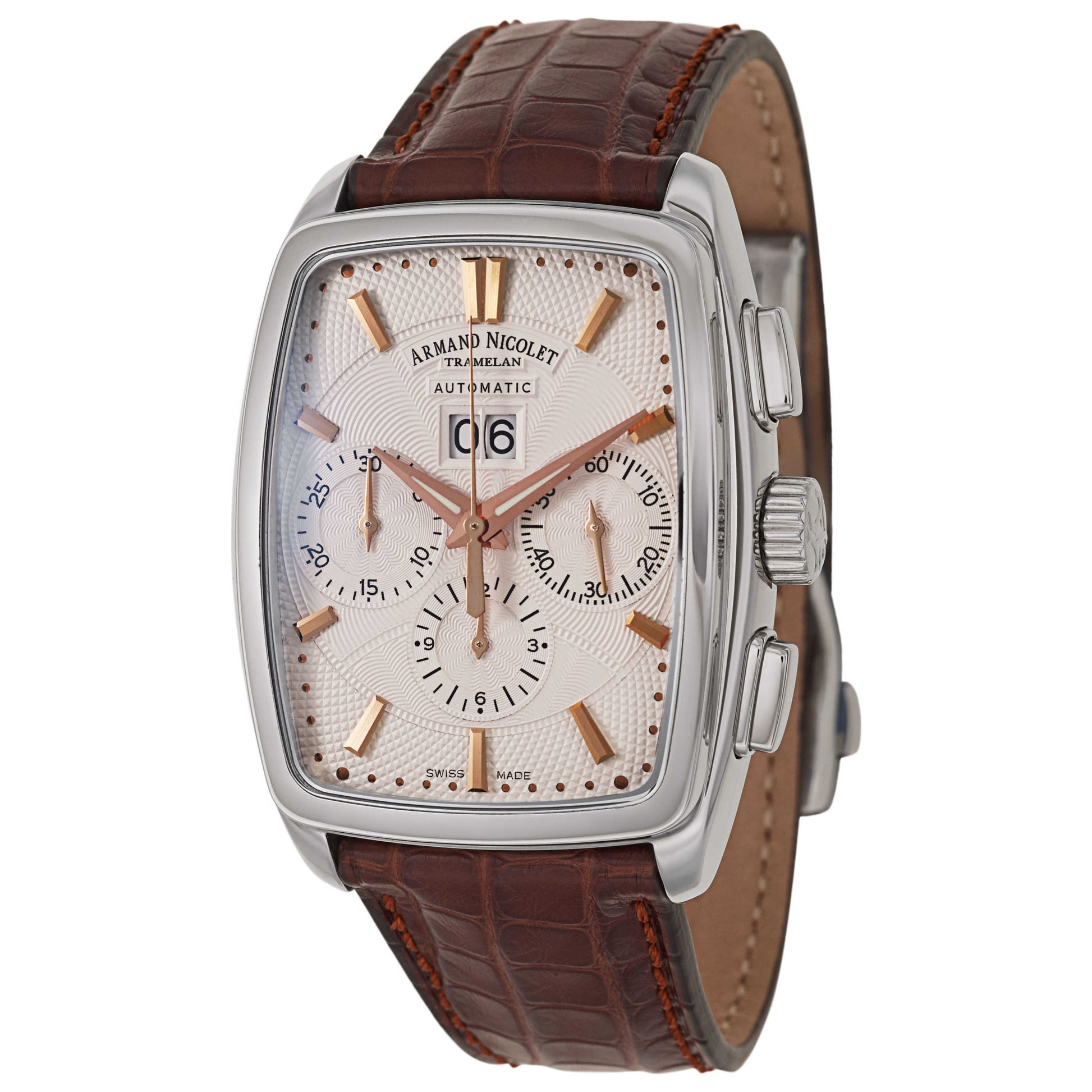 Armand Nicolet, TM7 Big Date & Chronograph, Men's Watch, Stainless Steel Case, Leather Alligator Strap, Swiss Mechanical Automatic (Self-Winding), 9638A-AS-P968MR3