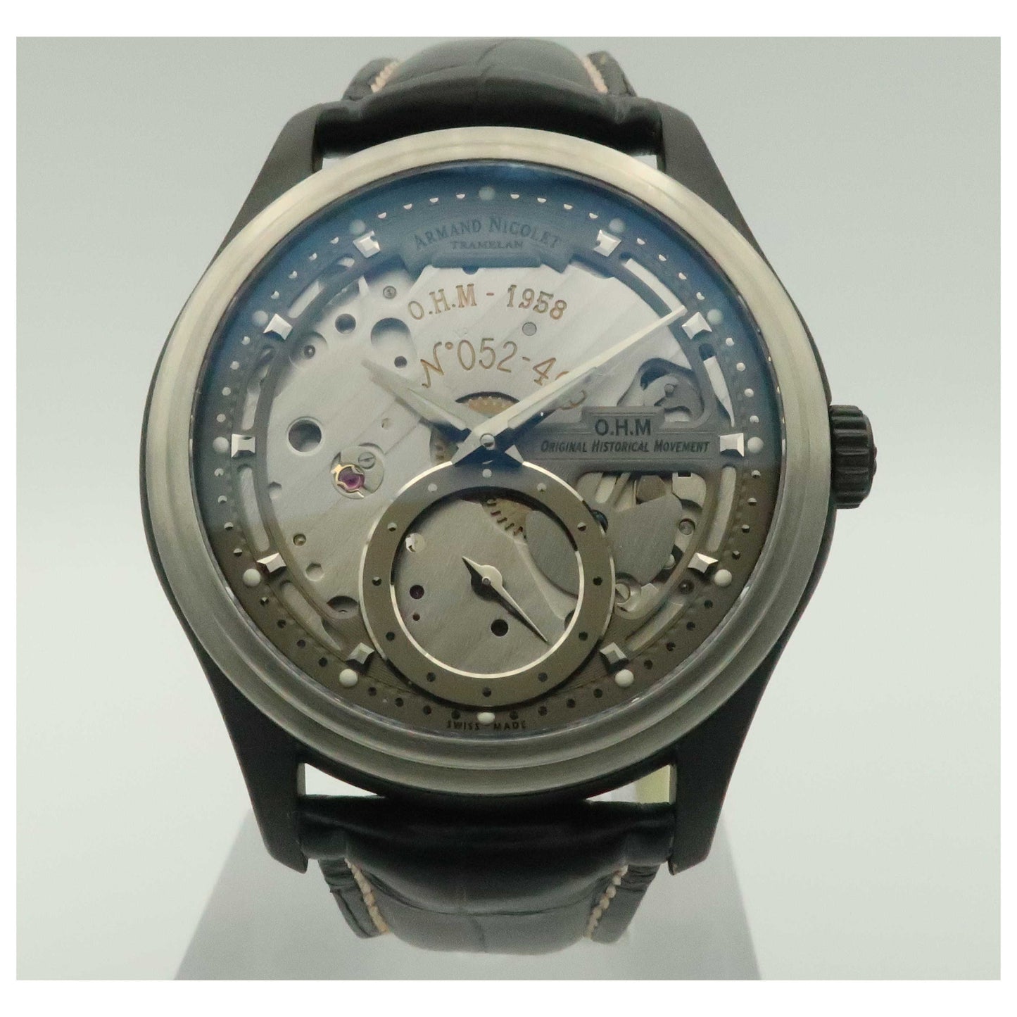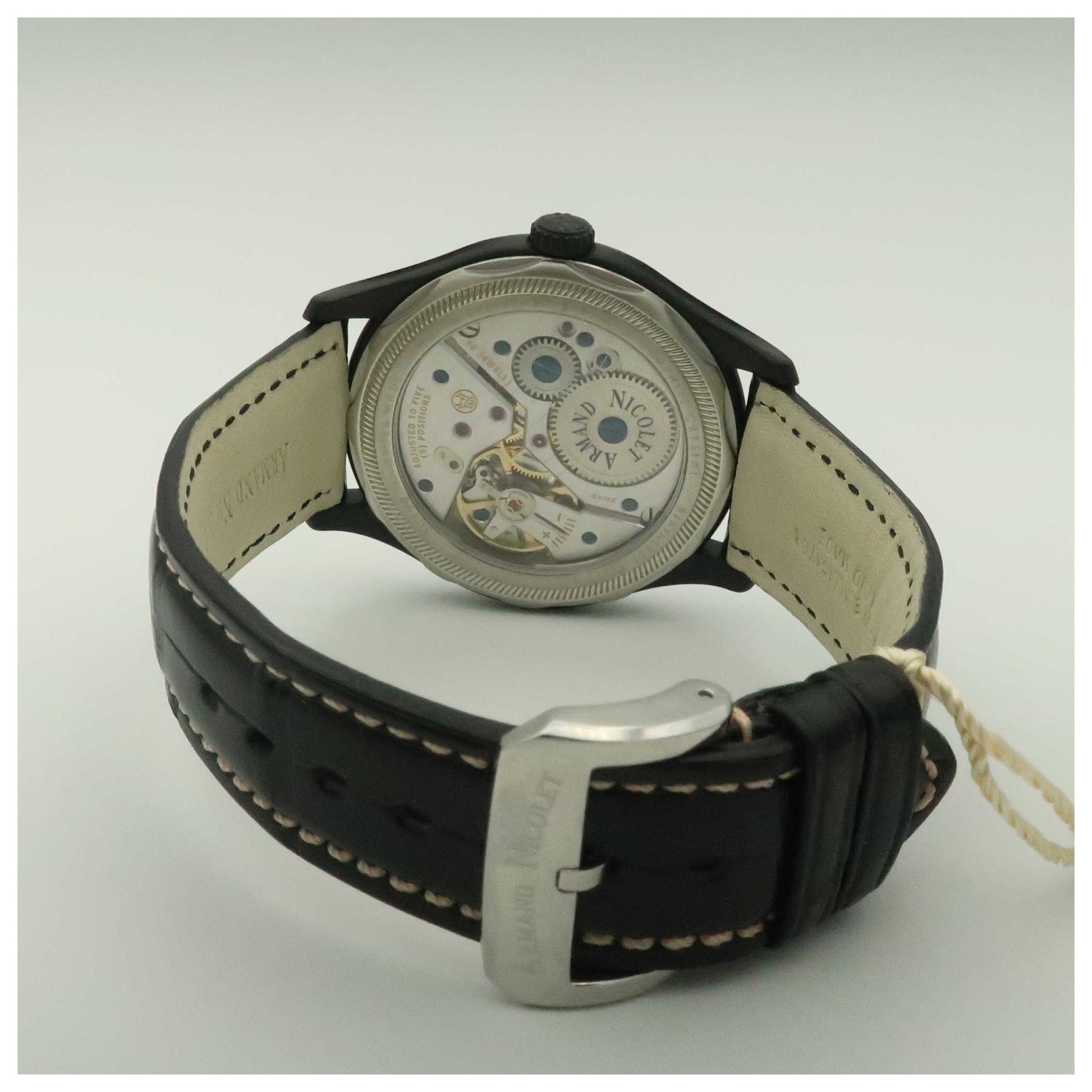 Armand Nicolet, L14, Men's Watch, Stainless Steel and Black DLC Coating Case, Leather Alligator Strap, Swiss Mechanical Manual (Hand-Winding), A750ANA-GRP713NS2-SD