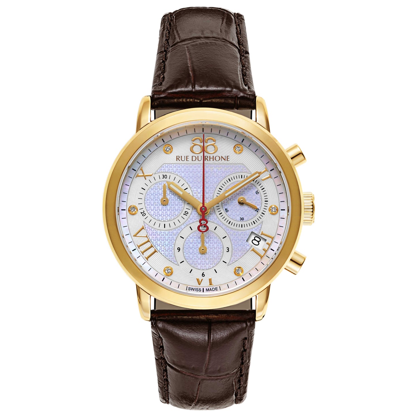 88 Rue du Rhone, Double 8 Origin Chronograph, Women's Watch, Stainless Steel Yellow Gold PVD Coated Case, Leather Strap, Swiss Quartz (Battery-Powered), 87WA130028