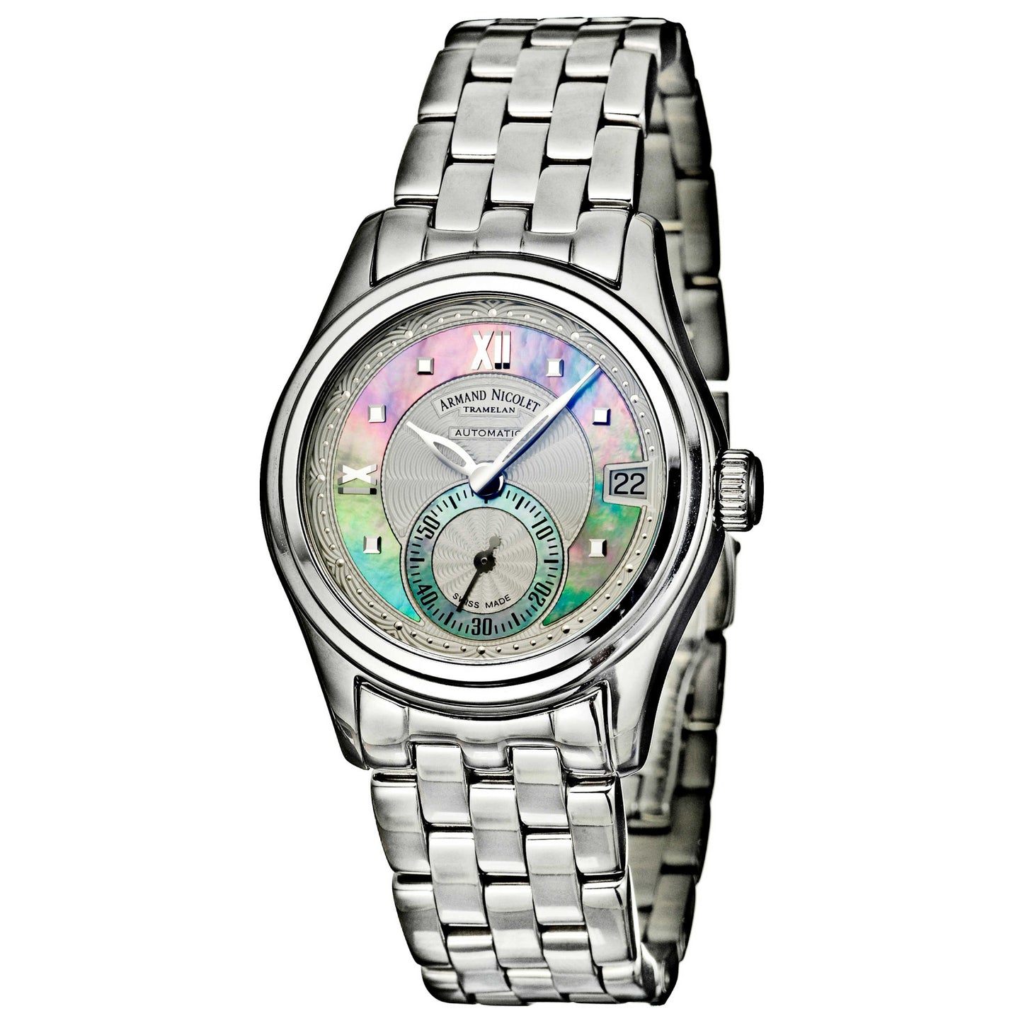 Armand Nicolet, M03, Women's Watch, Stainless Steel Case, Stainless Steel Bracelet, Mechanical Automatic Self-Winding Movement Swiss Made, 9155A-AK-M9150