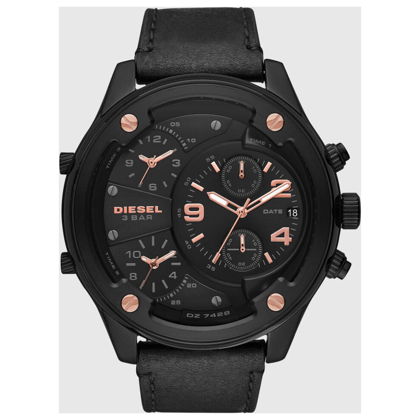 Diesel, Boltdown, Men's Watch, Stainless Steel Black PVD Coated Case, Leather Strap, Quartz, DZ7428