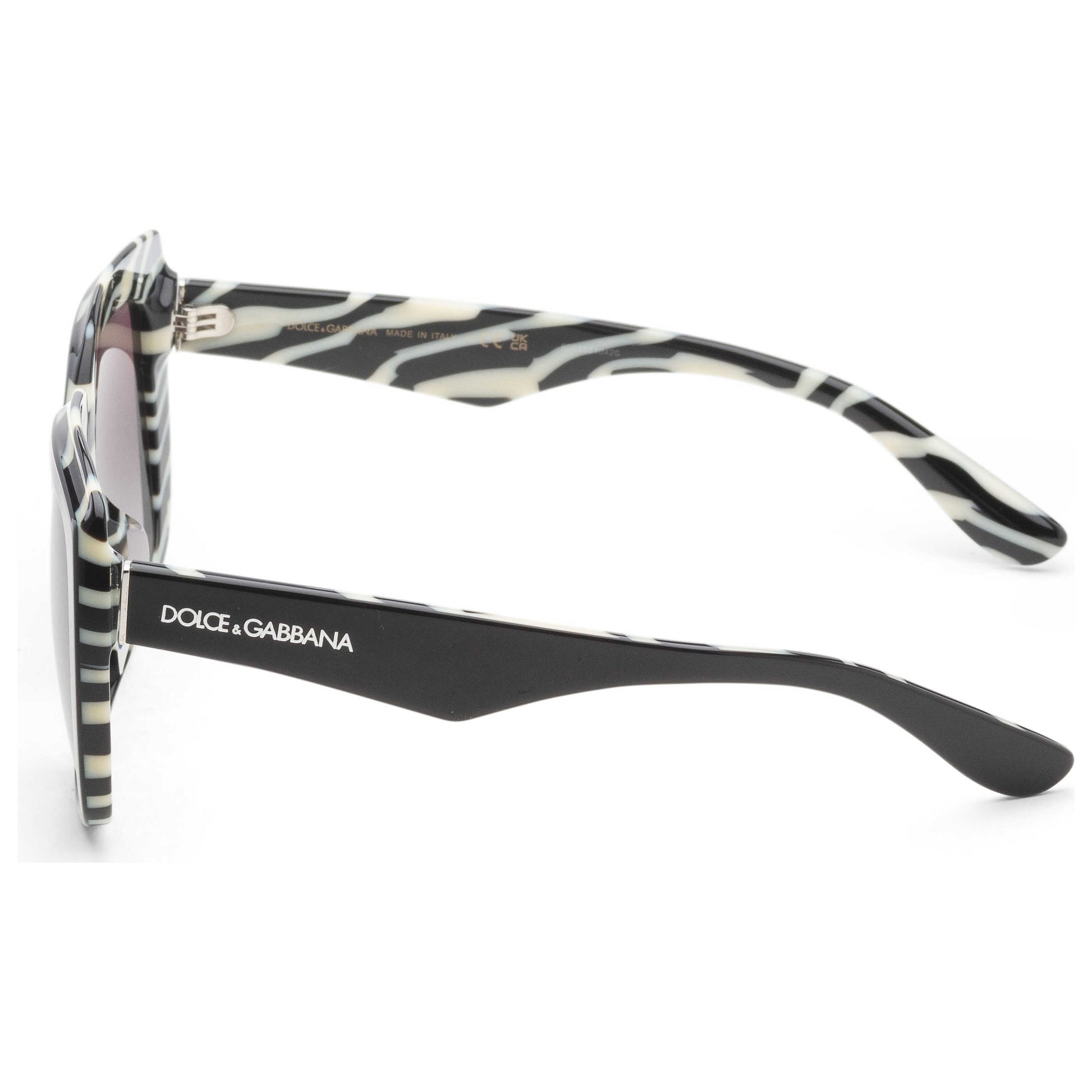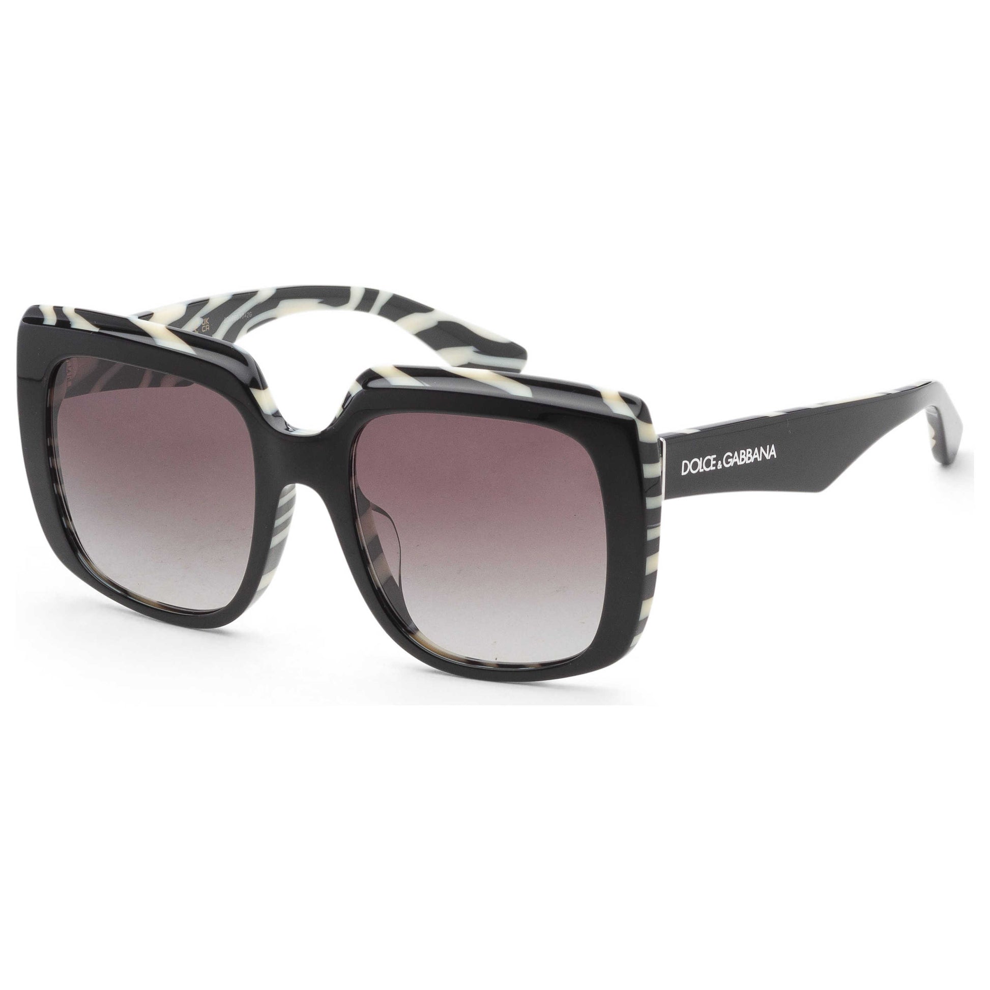 Elevate your style with Dolce & Gabbana women's sunglasses, featuring a unique Top Black On Zebra square frame crafted from acetate. With a lens width of 54 mm and grey gradient lenses offering 100% UV protection, these sunglasses are as functional as they are stylish. Made in Italy, they are perfect for adding a touch of sophistication to any outfit. DG4414F-33728G-54