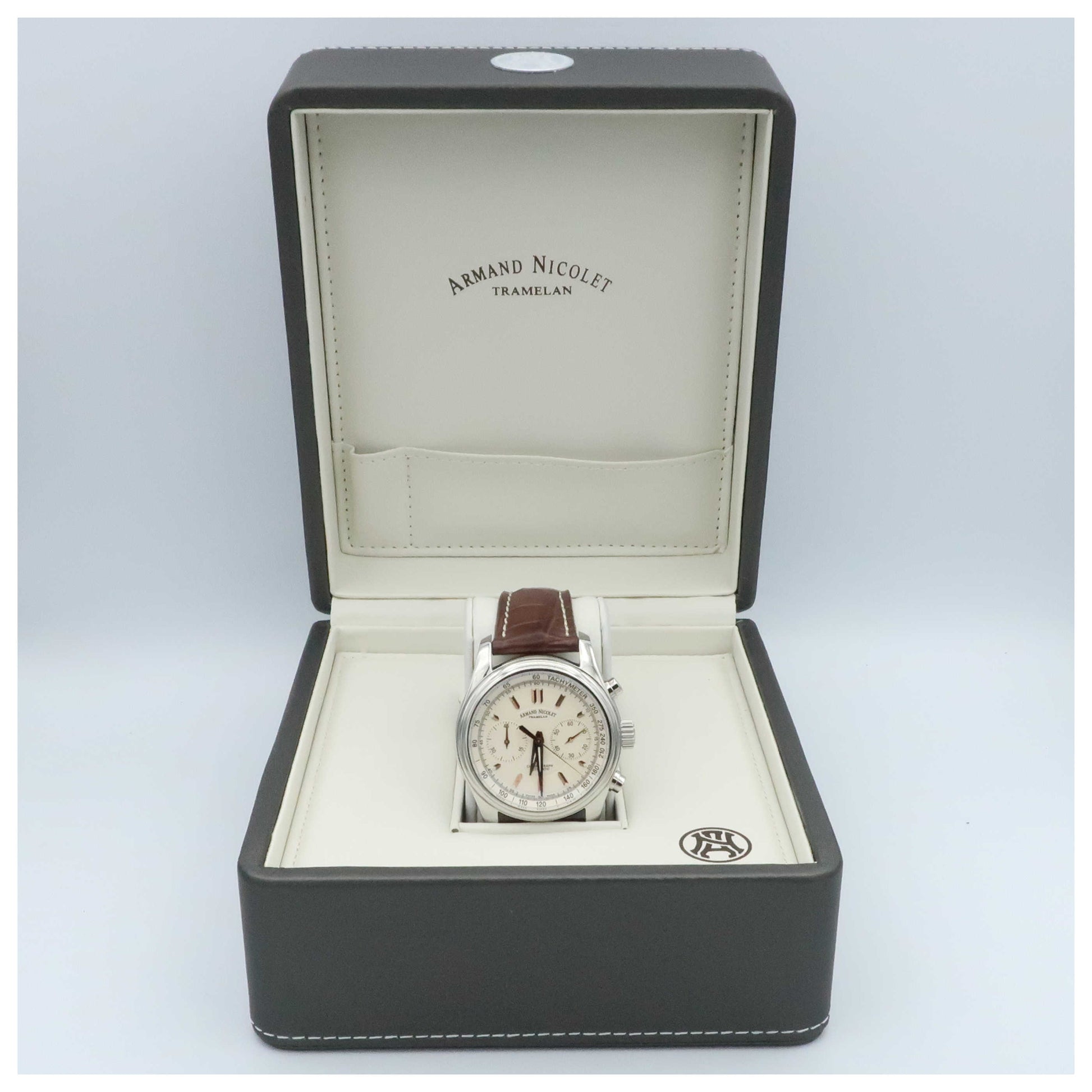 Armand Nicolet, M02, Men's Watch, Stainless Steel Case, Leather Alligator Strap, Swiss Mechanical Automatic (Self-Winding), 9144A-AS-P974MR2-SDV