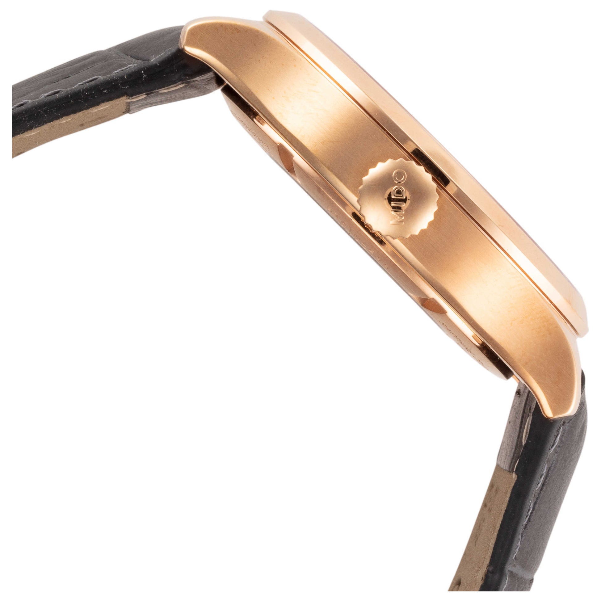 Crafted for the woman who appreciates precision, the Mido Multifort watch embodies Swiss craftsmanship. A robust round stainless steel case with a scratch-resistant sapphire crystal and exhibition case back encapsulates the sophisticated automatic Swiss-Made movement. The mother-of-pearl dial is complemented by a luxurious black leather strap with a secure pin buckle, ensuring style and durability. Water-resistant to 50m, this timepiece merges functionality with a timeless aesthetic, perfect for every occasion. M0050073610100