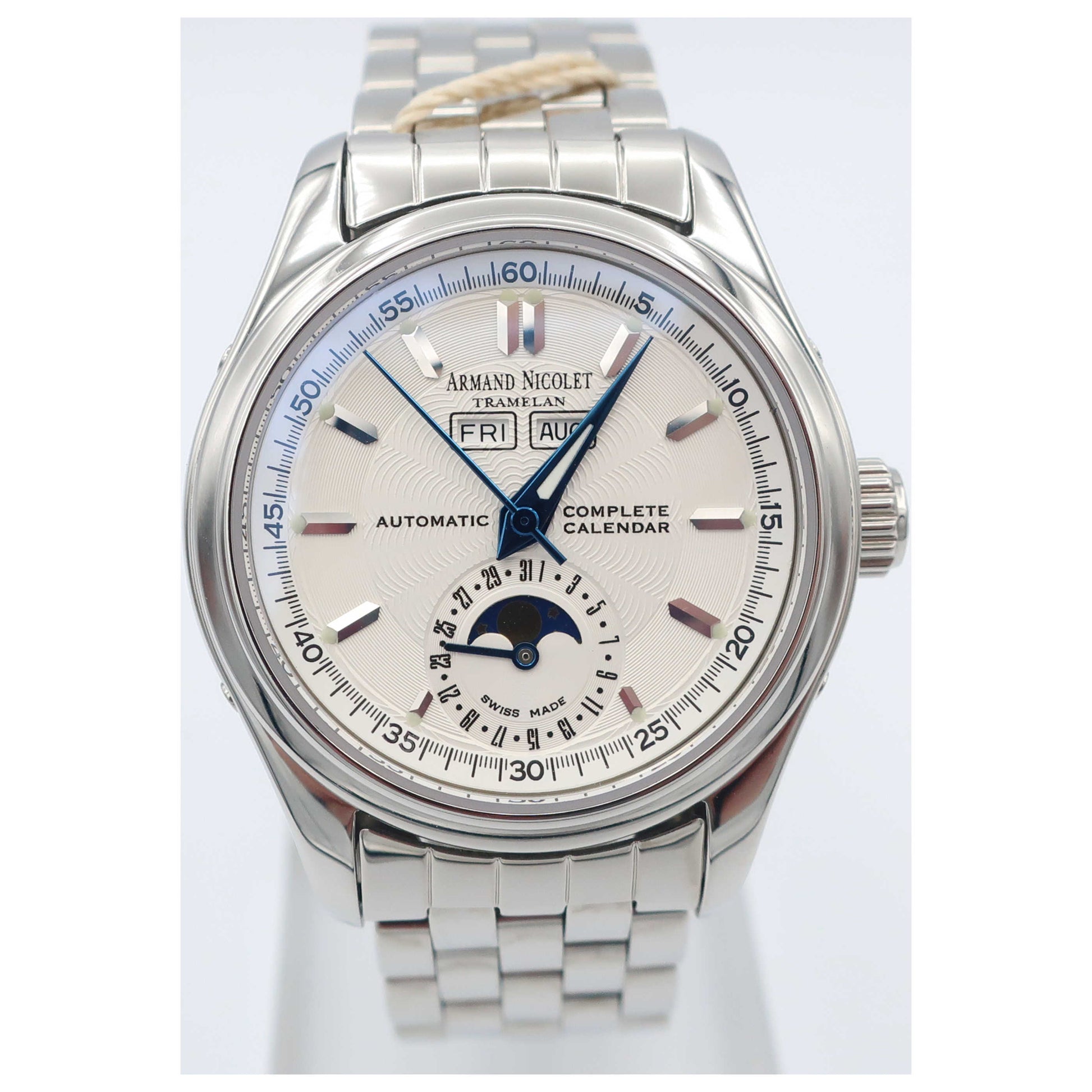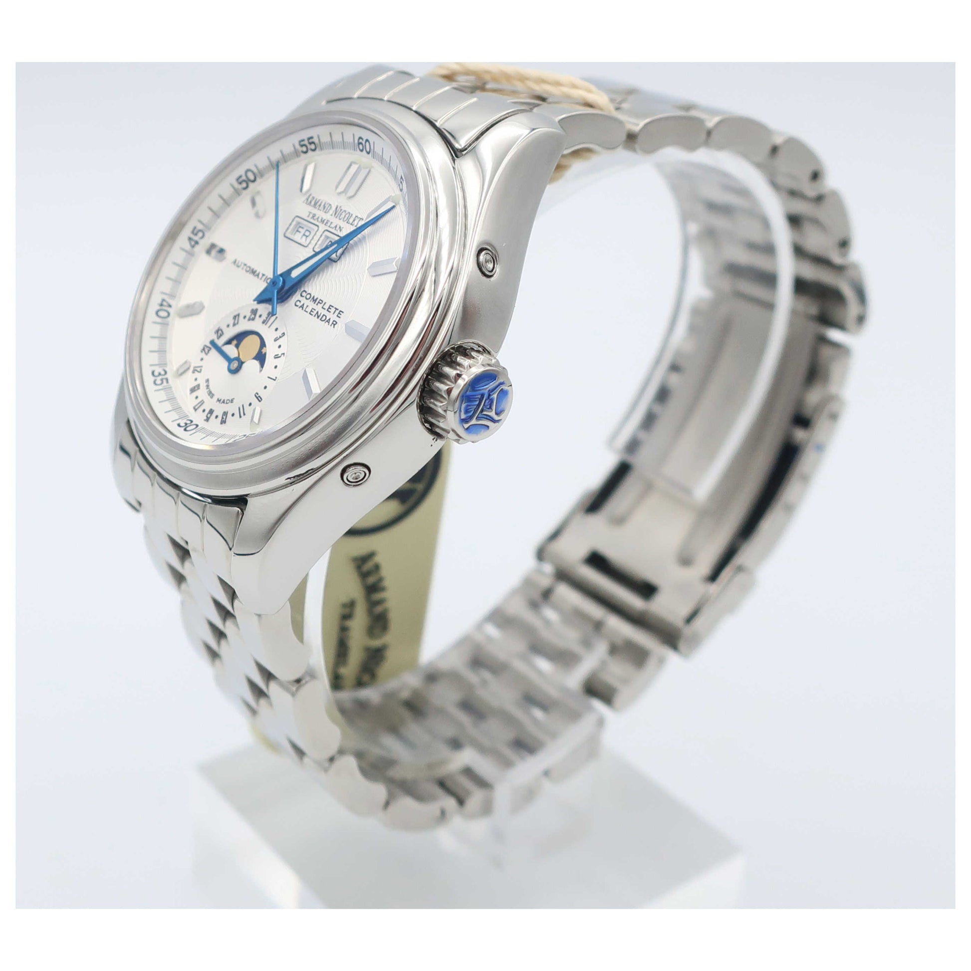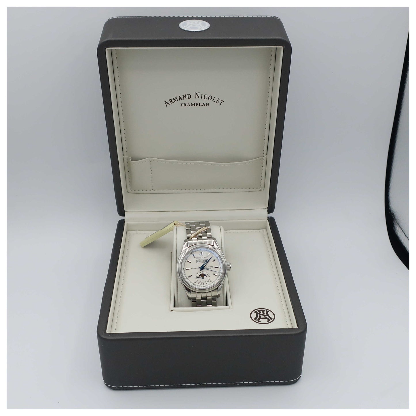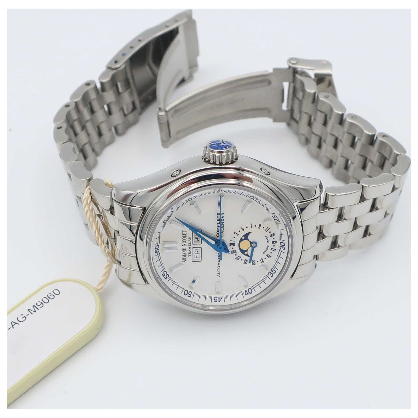 Armand Nicolet, Hunter Complete Calendar, Men's Watch, Stainless Steel Case, Stainless Steel Bracelet, Automatic, 9042A-1-AG-M9060-SD