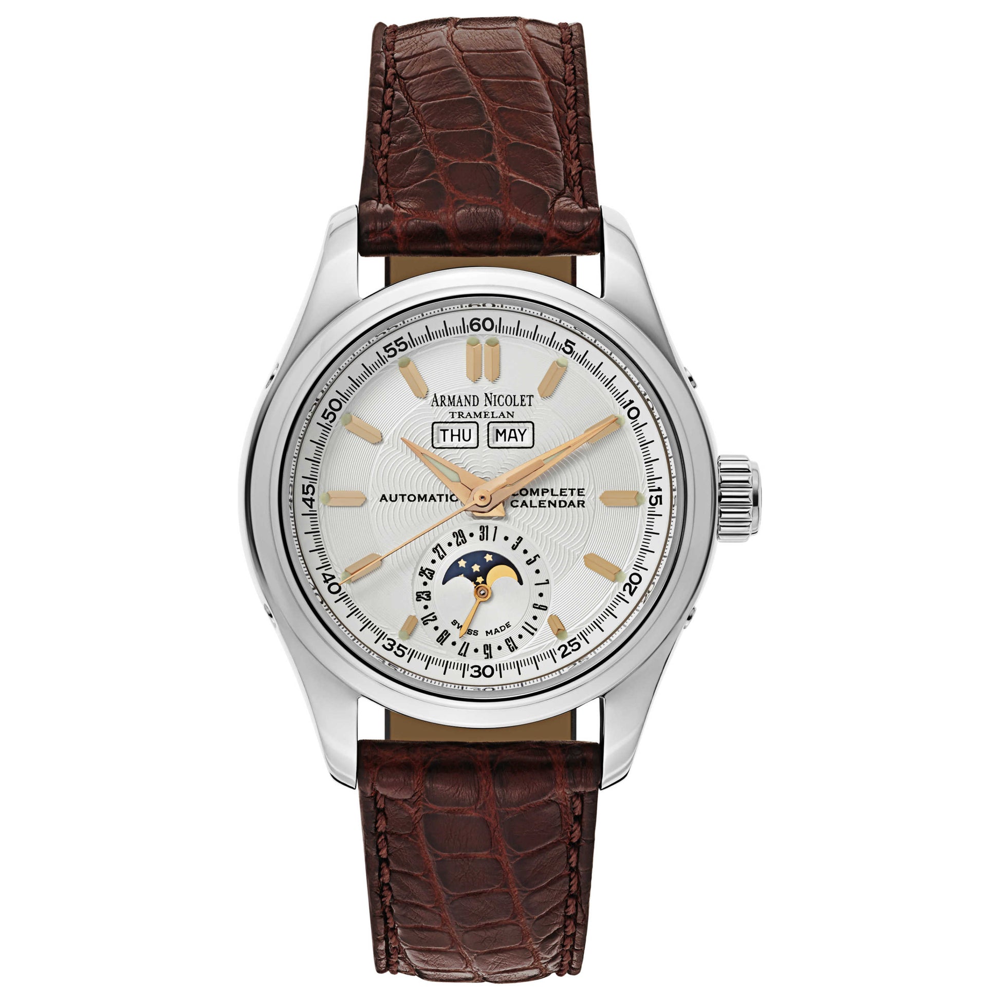 Armand Nicolet, Hunter Complete Calendar, Men's Watch, Stainless Steel Case, Leather Alligator Strap, Automatic, 9042A-1-AS-P742MR9