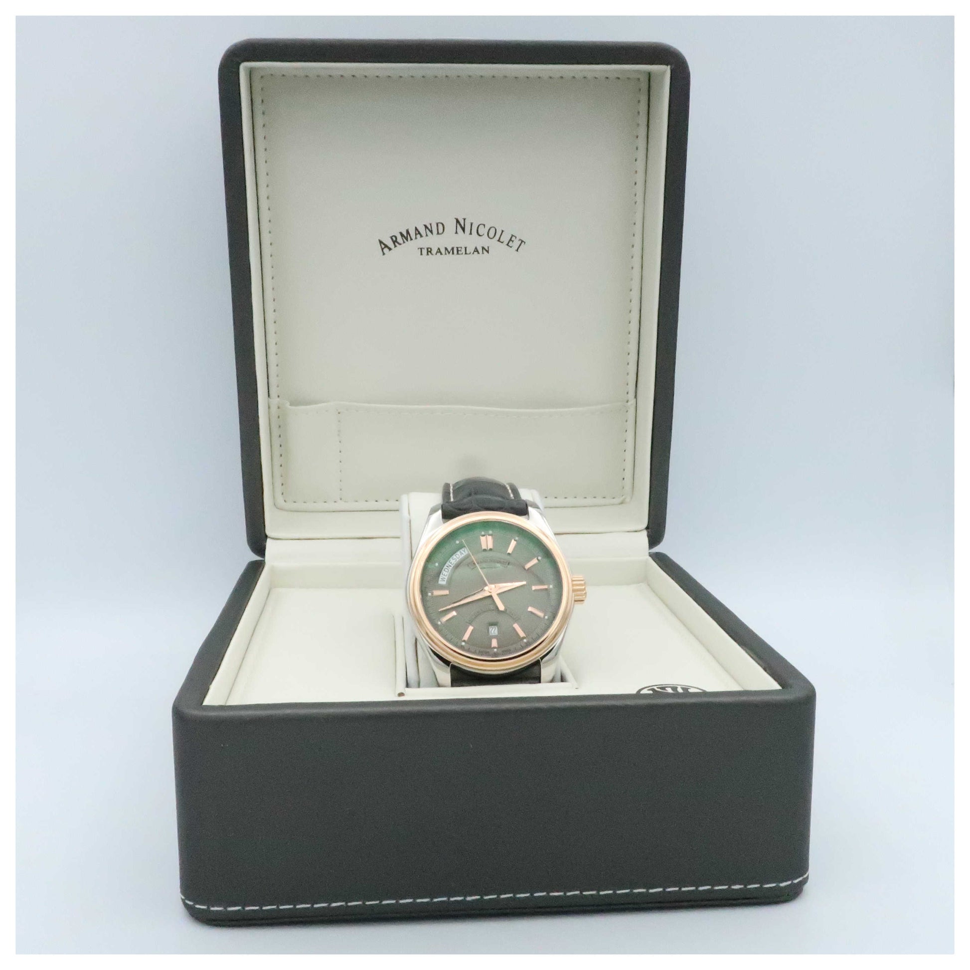 Armand Nicolet, M02, Men's Watch, 18K Rose Gold and Stainless Steel Case, Leather Alligator Strap, Swiss Mechanical Automatic (Self-Winding), 8641A-2-GRP974GR2-PO
