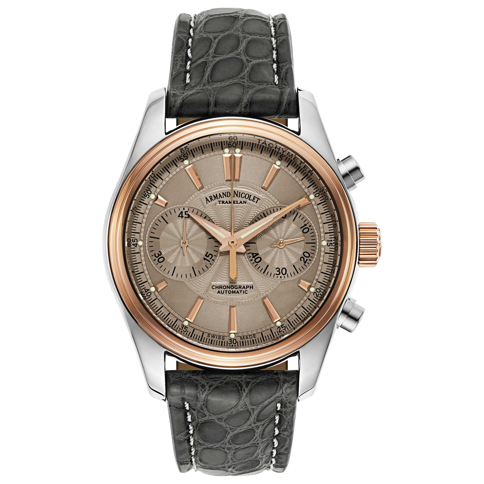 Armand Nicolet, M02, Men's Watch, 18K Rose Gold and Stainless Steel Case, Leather Alligator Strap, Swiss Mechanical Automatic (Self-Winding), 8644A-2-GS-P974GR2