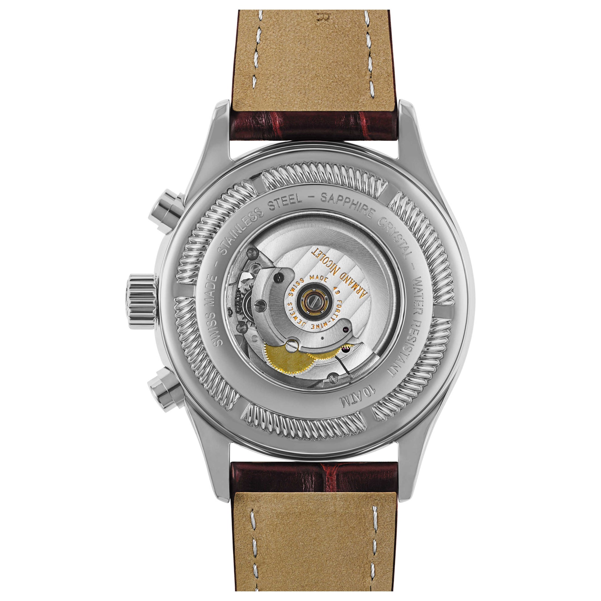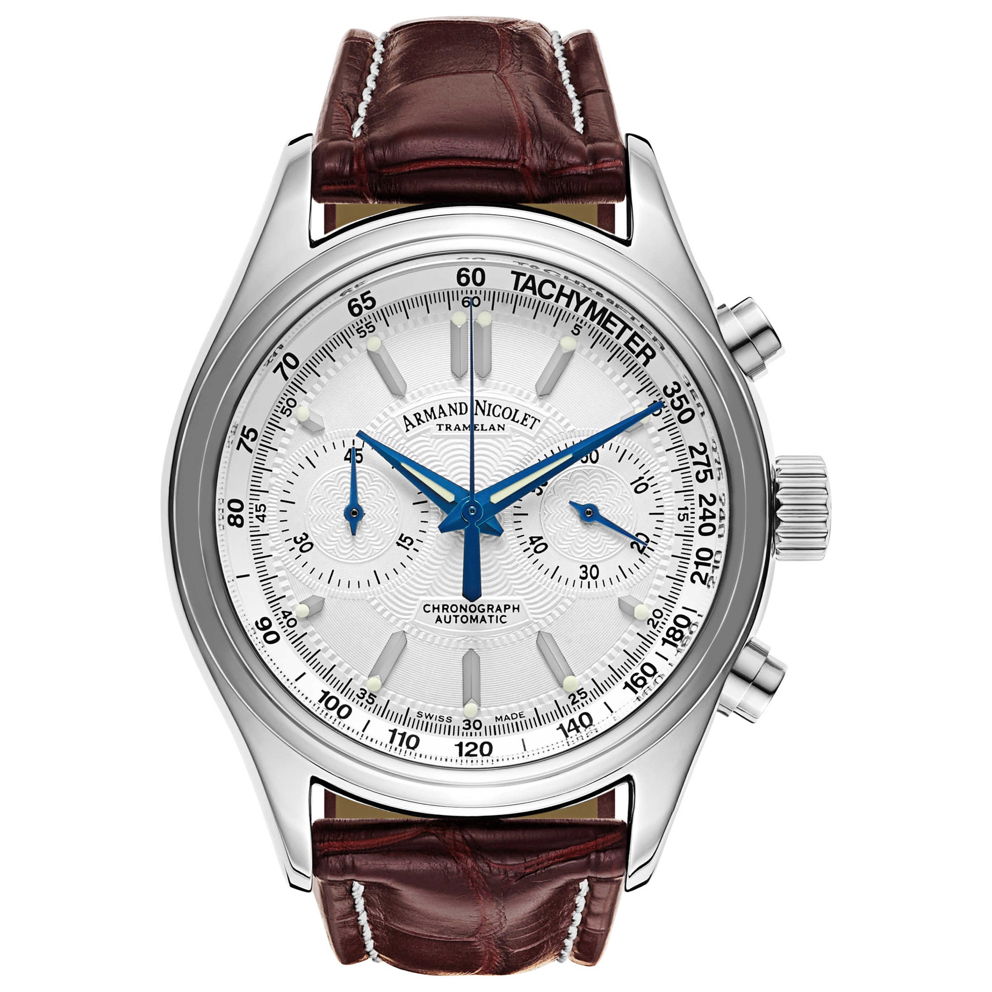 Armand Nicolet, M02 Chronograph, Men's Watch, Stainless Steel Case, Leather Alligator Strap, Swiss Mechanical Automatic (Self-Winding), 9144A-AG-P974MR2