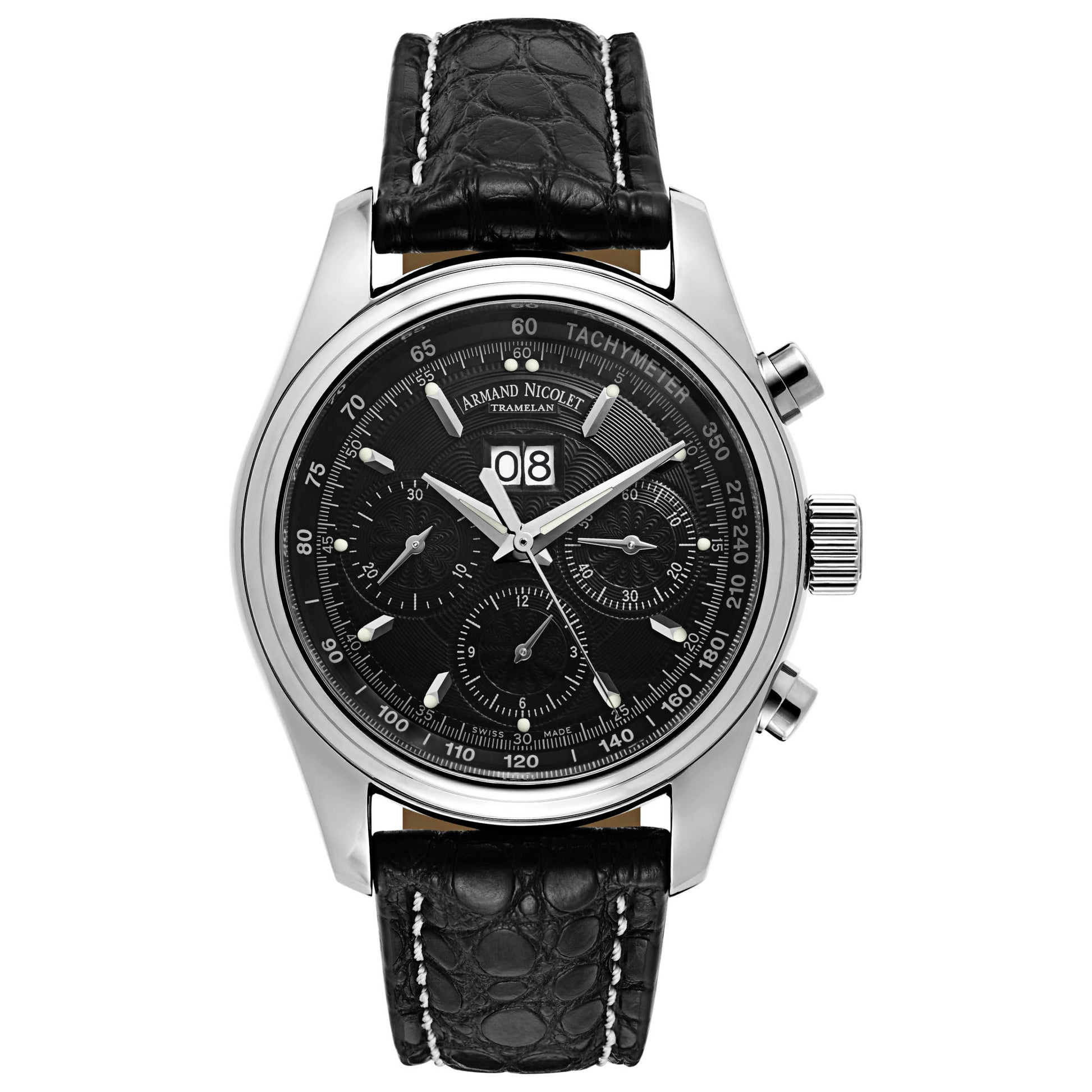 Armand Nicolet, M02, Men's Watch, Stainless Steel Case, Leather Alligator Strap, Swiss Mechanical Automatic (Self-Winding), 9148A-NR-P974NR2