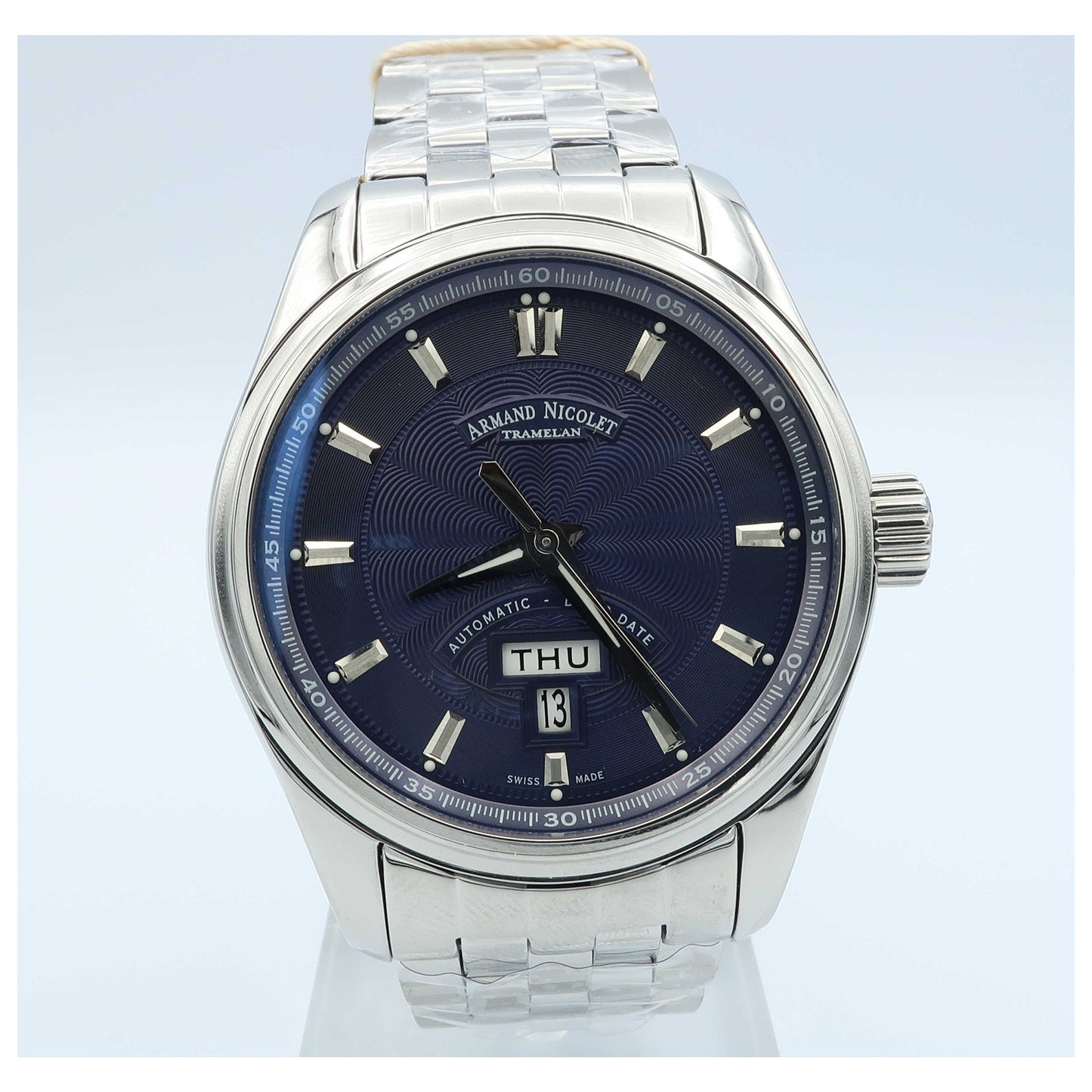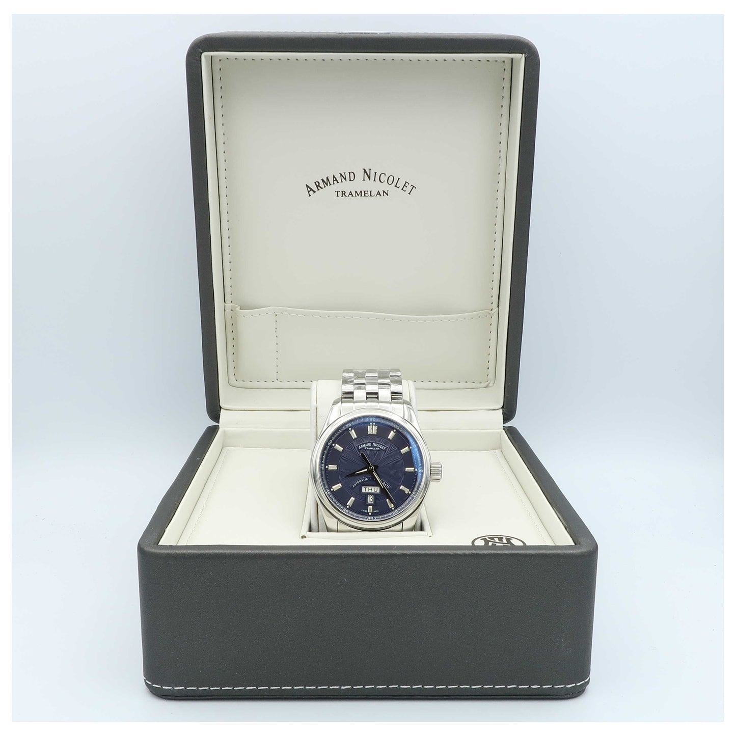 Armand Nicolet, M02, Men's Watch, Stainless Steel Case, Stainless Steel Bracelet, Swiss Mechanical Automatic (Self-Winding), 9640A-BU-M9140-SD