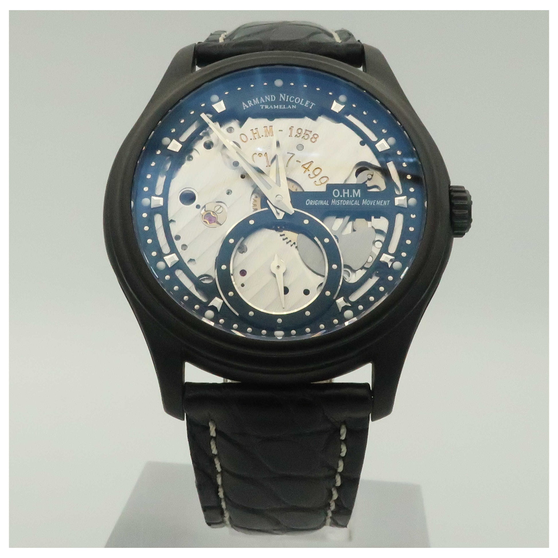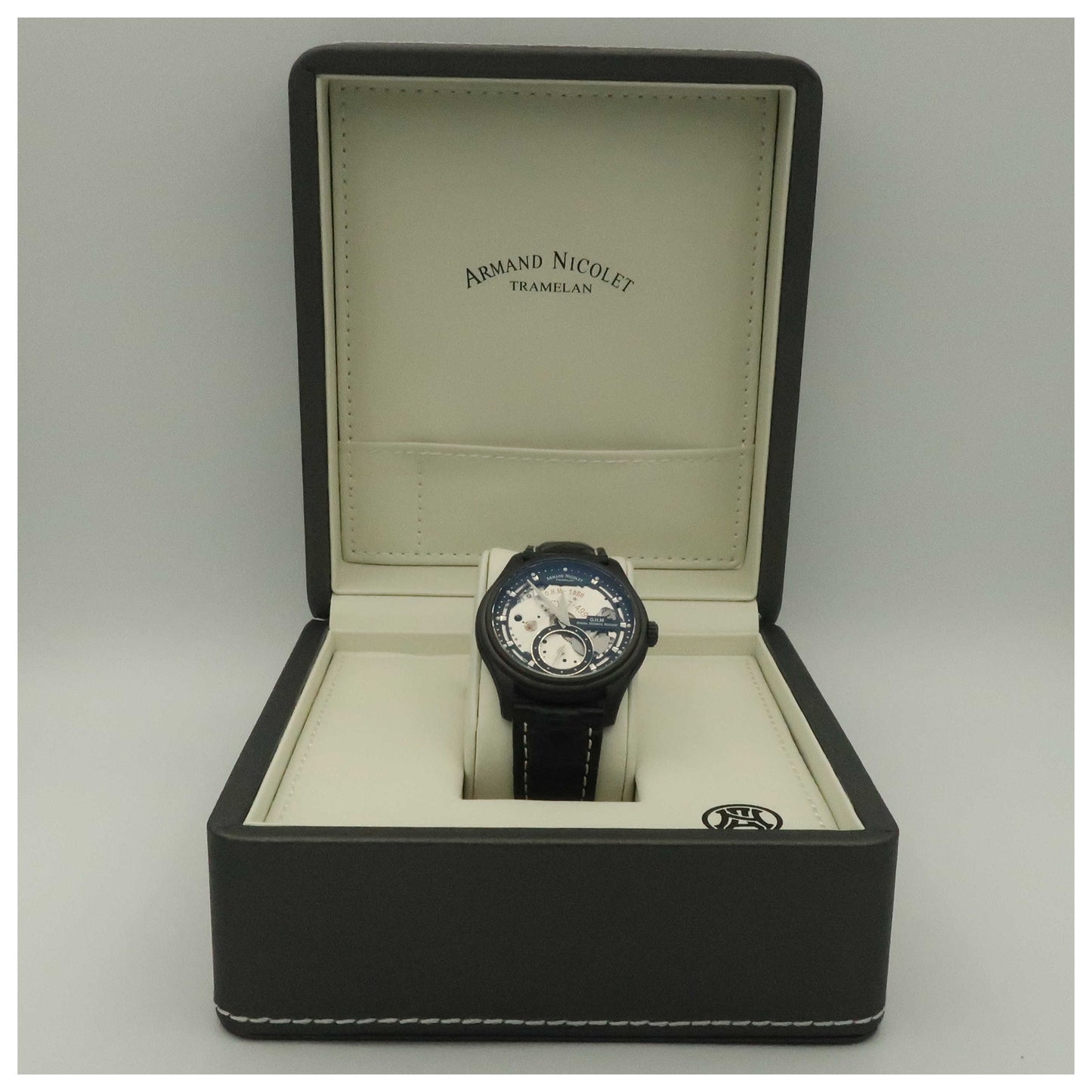 Armand Nicolet, L14, Men's Watch, Stainless Steel Black DLC Coating Case, Leather Alligator Strap, Swiss Mechanical Manual (Hand-Winding), A750ANN-NRP713NR2-PO