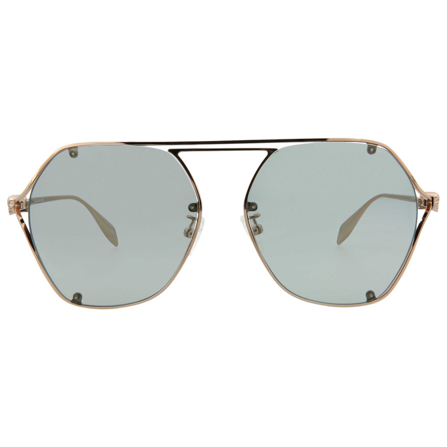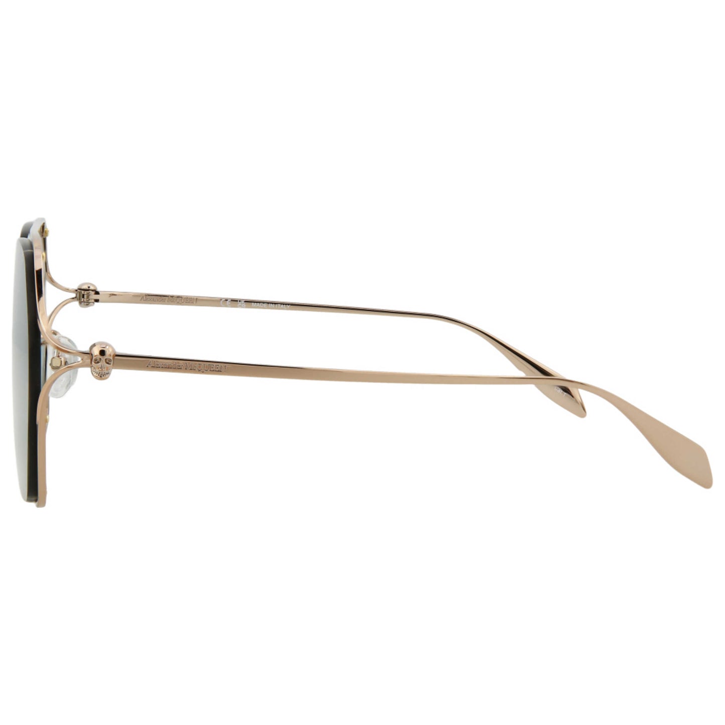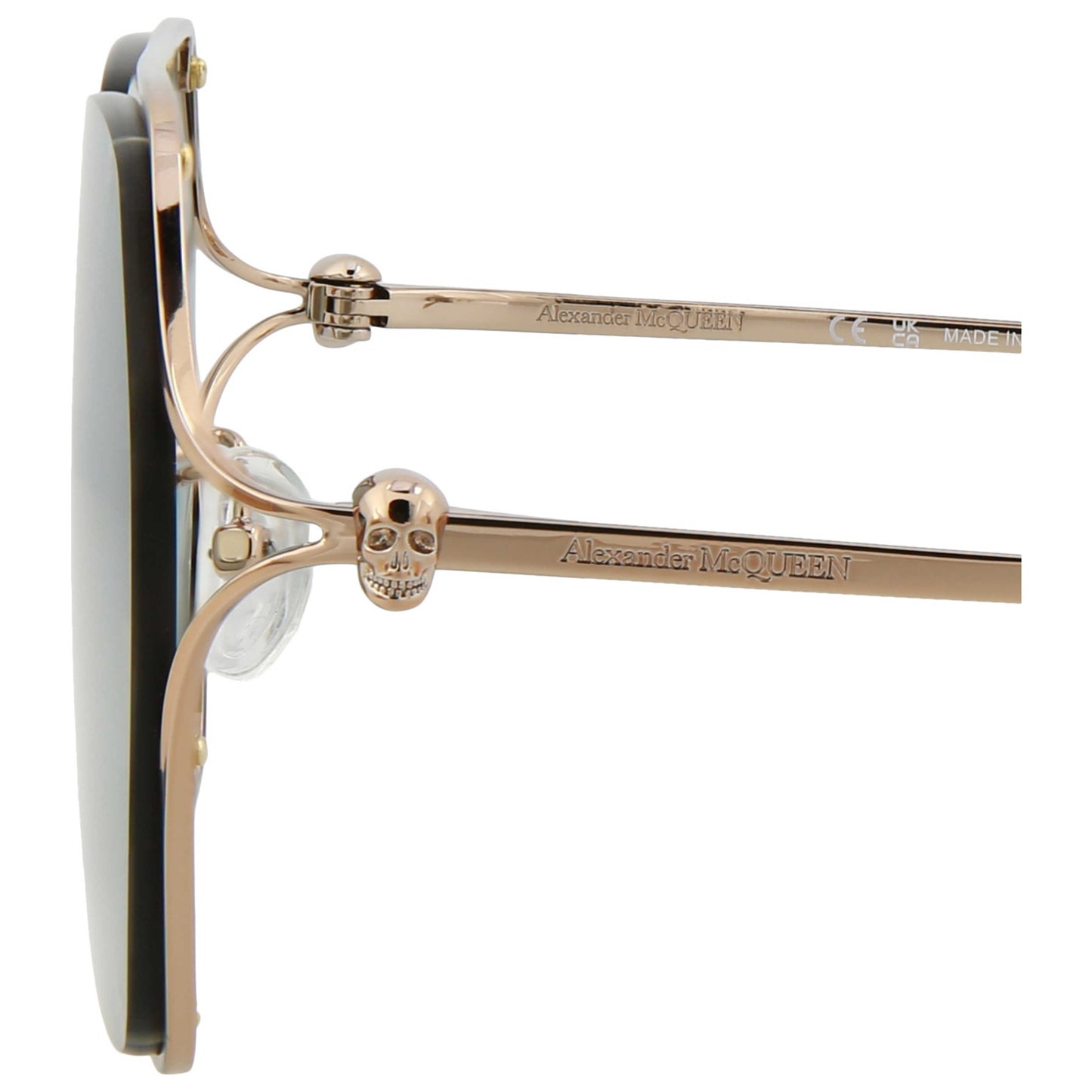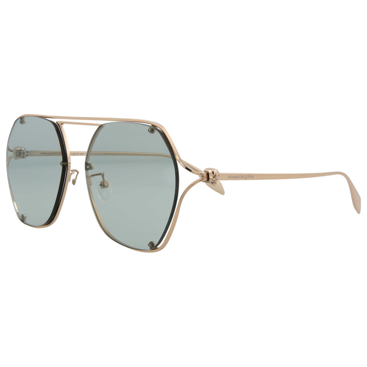 Alexander McQueen presents women's sunglasses that blend luxurious design with superior comfort. Crafted in Italy, these metal frames flaunt a striking gold finish and vibrant green lenses, ensuring you stand out. With a lens width of 58 mm and a 145 mm arm length, they promise a flawless fit and an unforgettable look. AM0367S-30012318-003