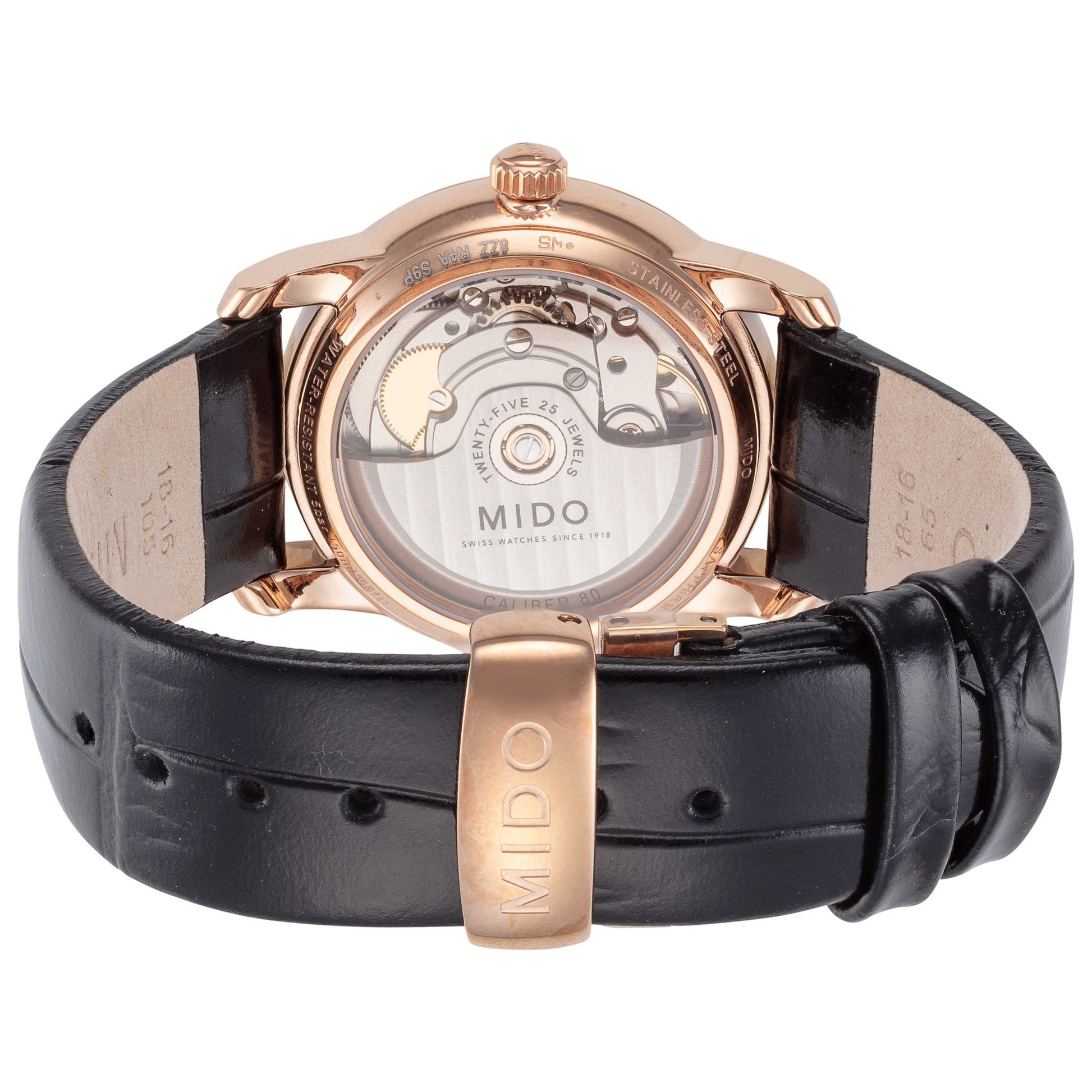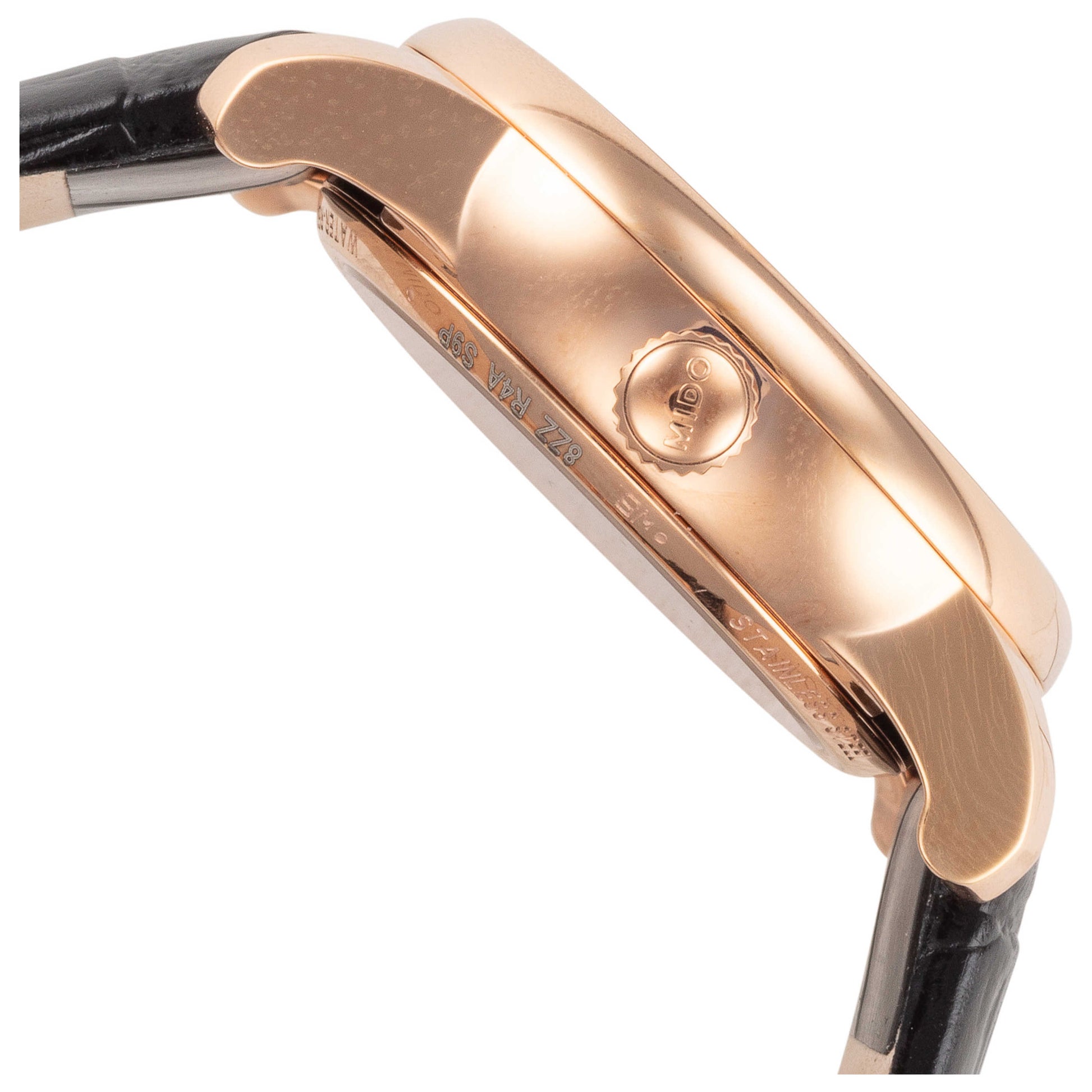 Make an elegant statement with the Mido Baroncelli women's watch, a splendid Swiss-made accessory that exudes timeless sophistication. This automatic watch is powered by a Powermatic 80 ETA C07.621 movement with an impressive 80-hour power reserve. It showcases a stunning white and orange dial adorned with a discreet date display at 6 o'clock, encased in a 33mm rose gold PVD stainless steel round case with an exhibition back. Protected by a scratch-resistant sapphire crystal and boasting a water resistance of 50m, this reliable timepiece is prepared for everyday wear. The stylish black leather strap, fitted with a deployment clasp, completes the refined aesthetic of this Mido watch. M0352073647100