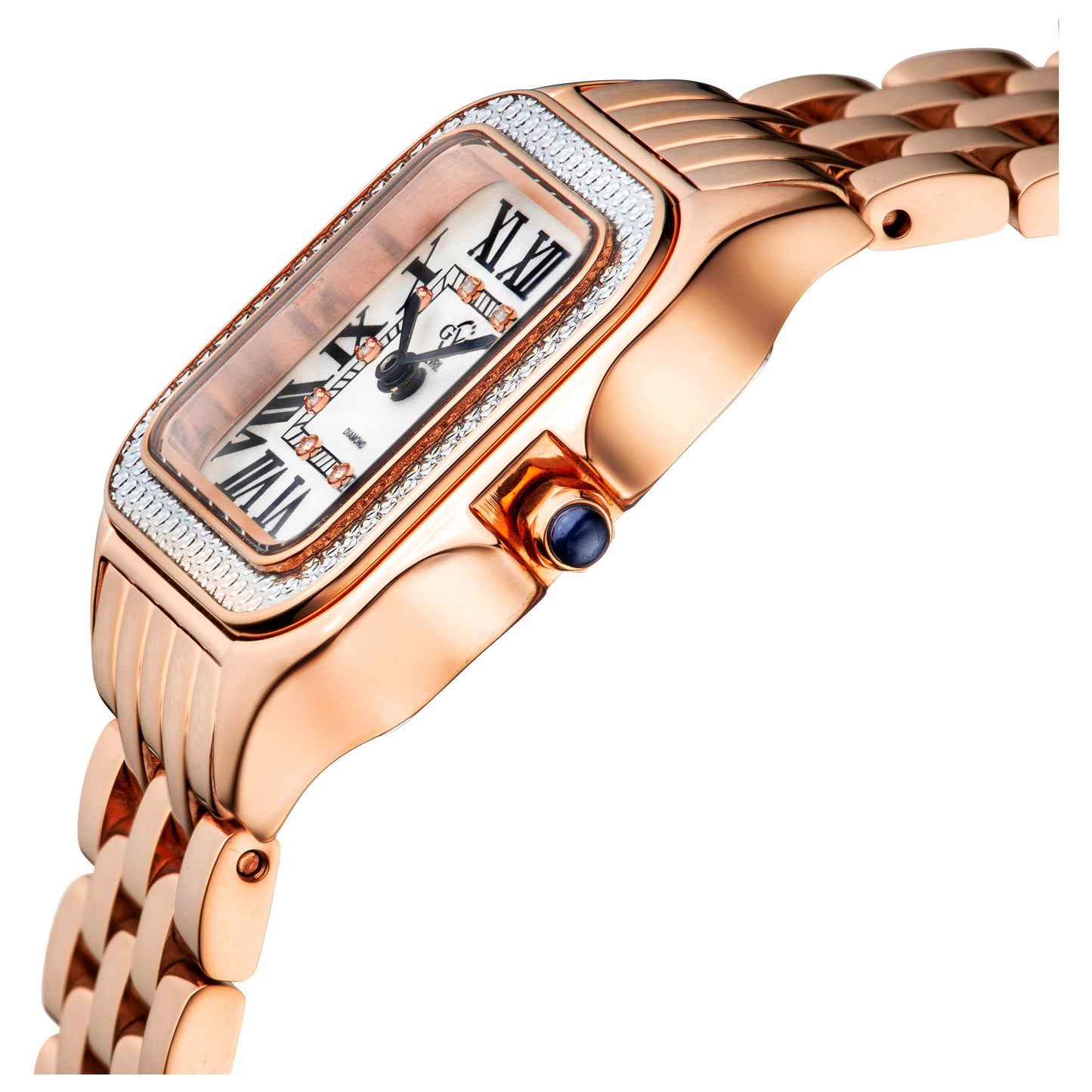 Discover the perfect balance of sophistication and style with the GV2 by Gevril Milan women's watch, meticulously crafted in Switzerland. This timepiece operates on a Swiss-made quartz movement and features a square, 27.5mm stainless steel case with a white dial under anti-reflective, scratch-resistant sapphire crystal. Its pull and push crown and closed case back contribute to the impressive 50m water resistance. The rose gold stainless steel bracelet, adorned with a secure deployment clasp, enhances its elegance, making it a must-have for every fashion-forward woman. 12111B