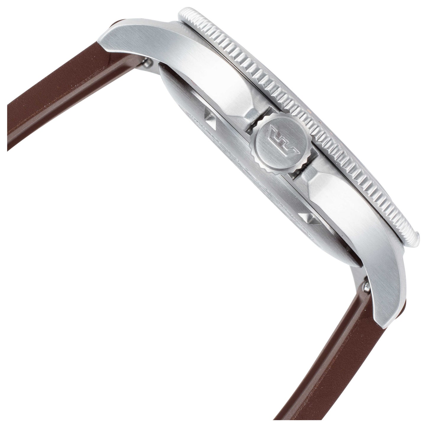 Add a touch of rugged masculinity to your style with the Glycine Combat Sub Sport 42 men’s watch. Featuring a unique brown dial with gold tone luminous hour, minute, and seconds hands, this fashionable timepiece is sure to make a statement. A date display at the 3 o’clock position and luminous dot hour markers offer additional functionality. The 42mm round stainless steel case houses the GL224 caliber automatic movement. Armed with scratch resistant sapphire crystal, the Glycine Combat Sub Sport 42 men’s watch offers superior water resistance up to 200 meters, up to 660 feet. A brown rubber strap acts as the ultimate accompaniment to the brown bezel and brown dial, and will fit wrists up to 8 inches in size.