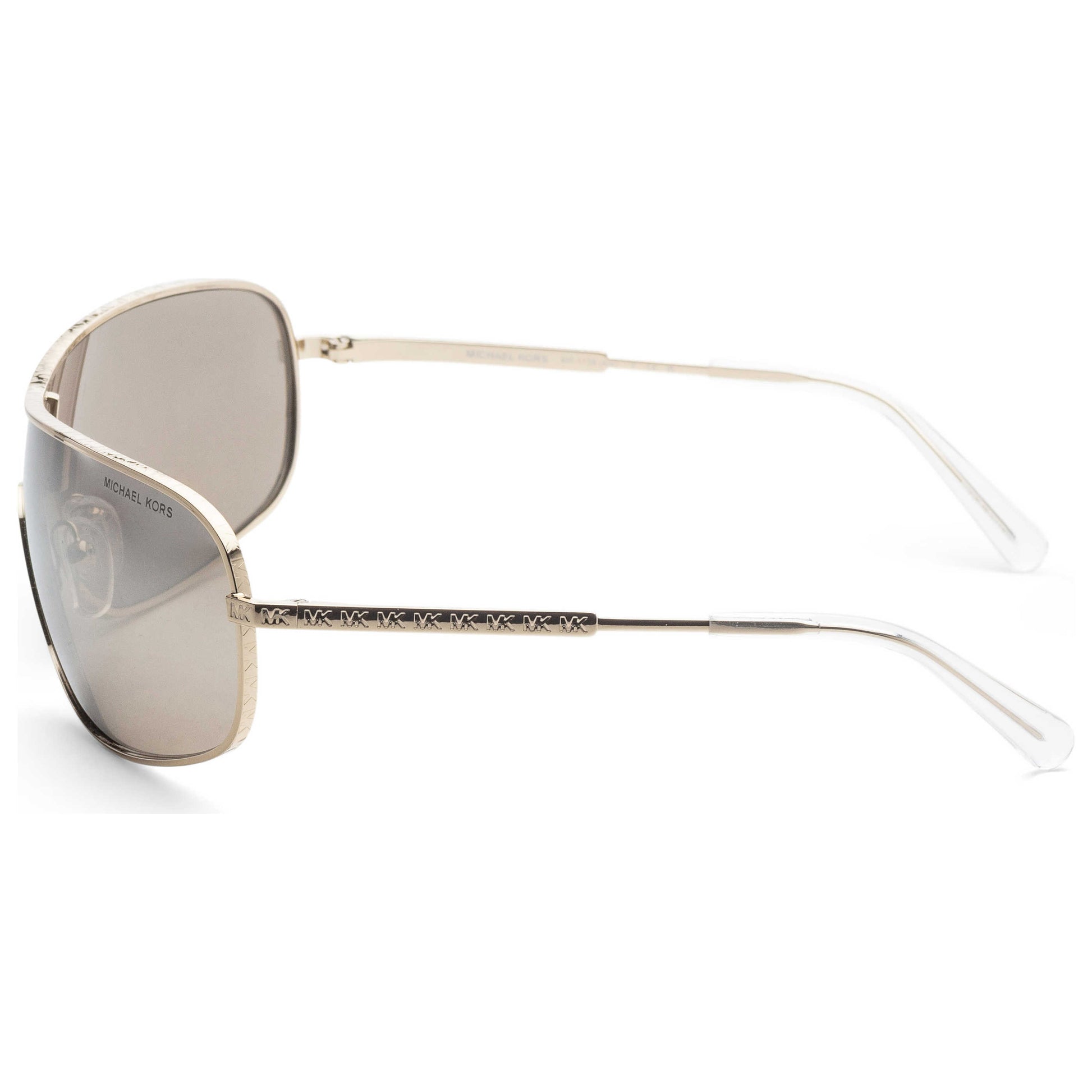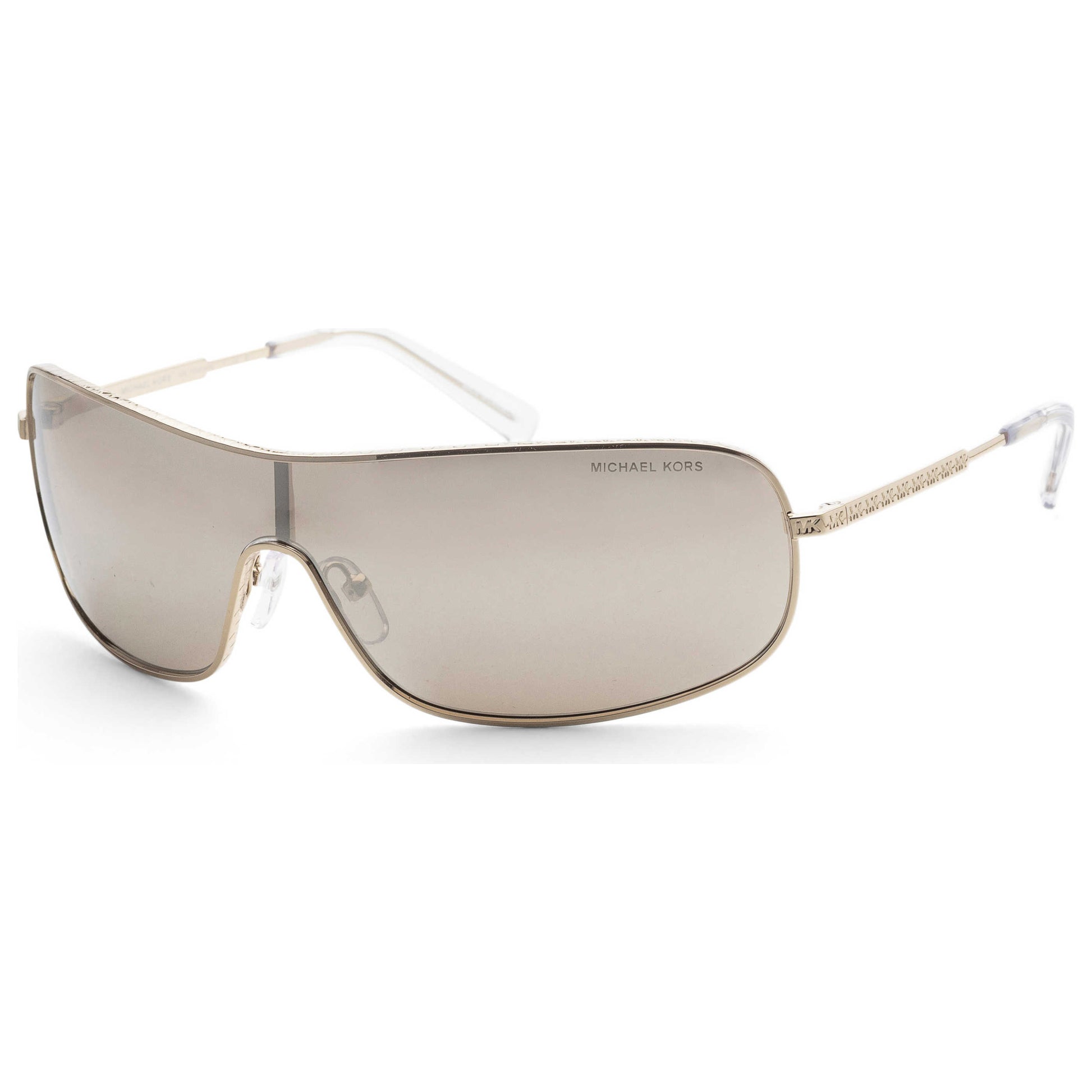 Introducing Michael Kors Aix women's sunglasses, blending the timeless charm of a light gold metal frame with the trendiness of silver mirror lenses. These rectangular sunglasses, with a 38 mm lens width, offer 100% UV protection for your eyes. Embrace the stylish blend of comfort, protection, and high-fashion in one versatile piece from Michael Kors. MK1139-10146G-38
