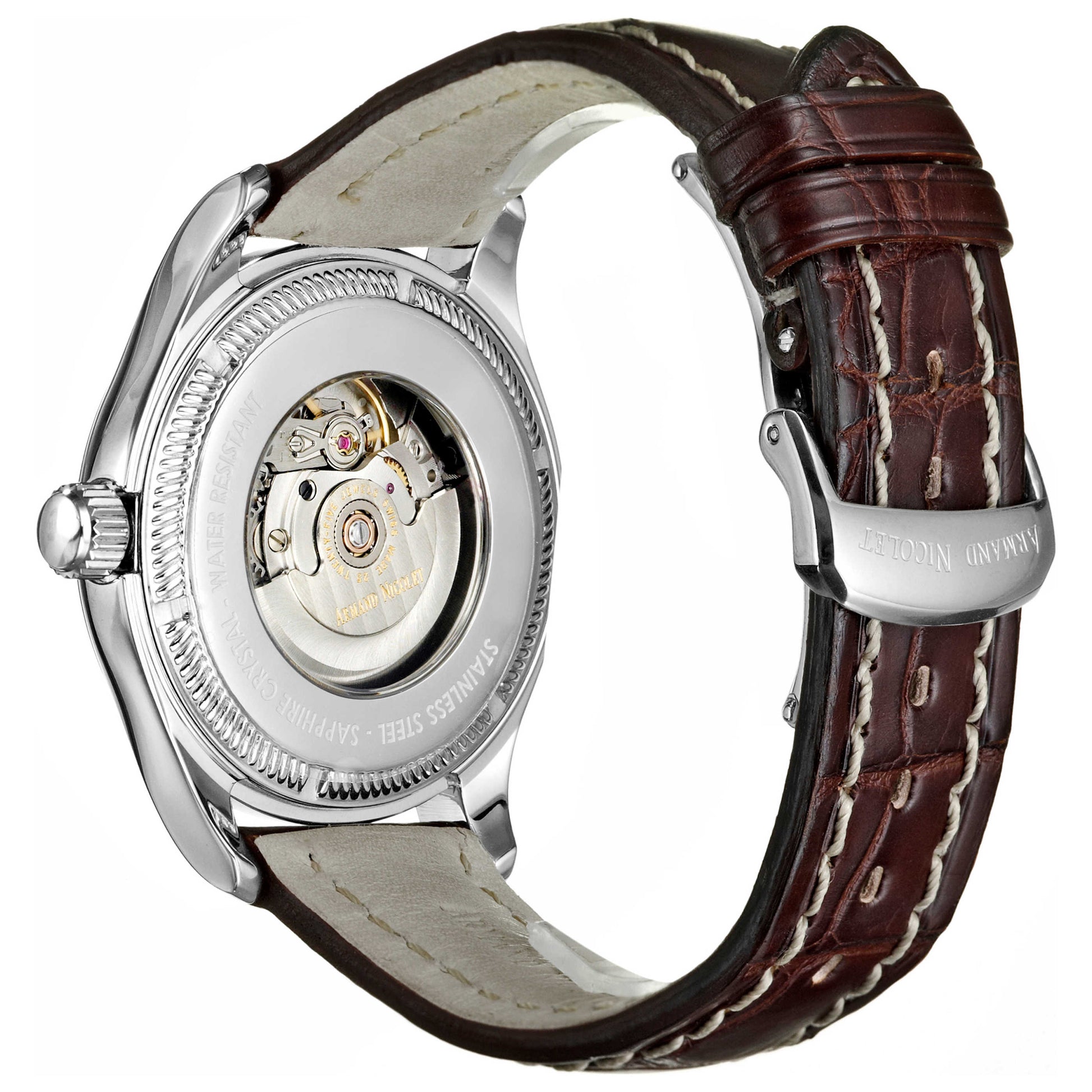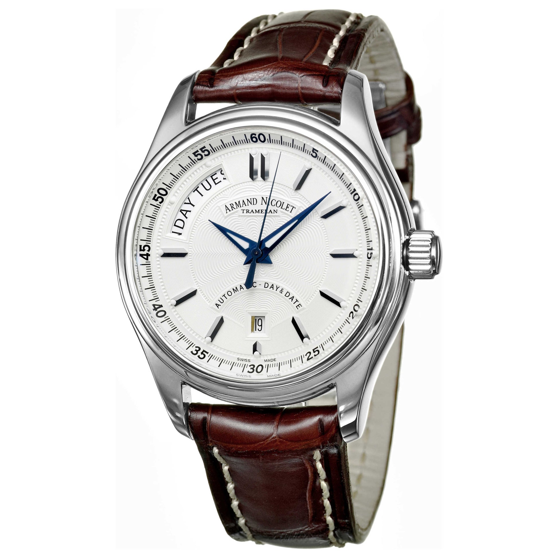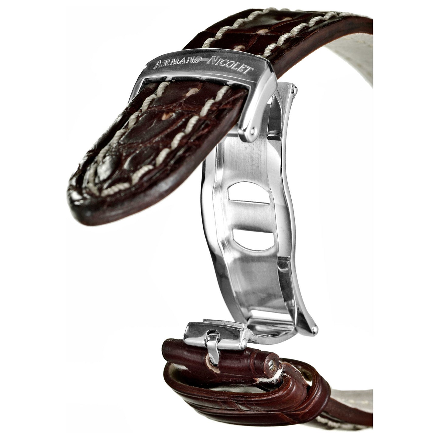Armand Nicolet, M02, Men's Watch, Stainless Steel Case, Leather Alligator Strap, Mechanical Automatic Self-Winding Swiss Movement, 9141A-AG-P914MR2
