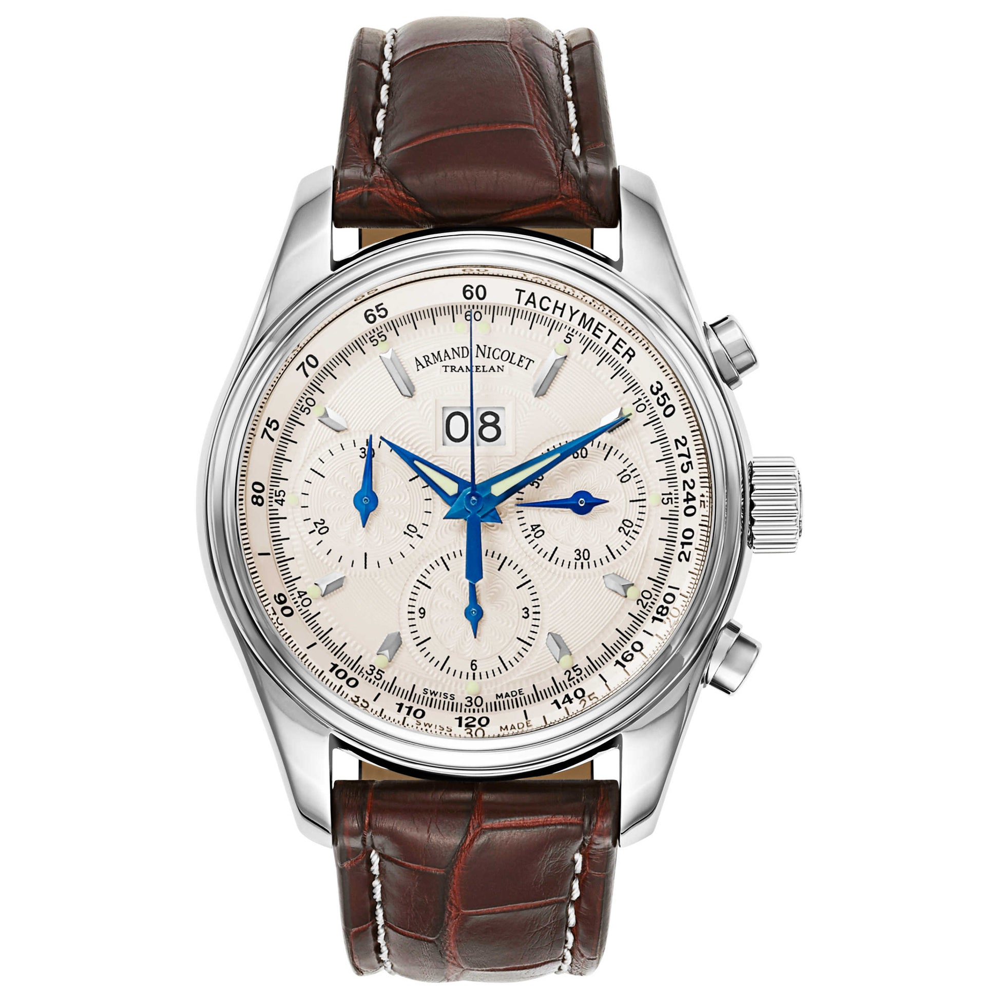 Armand Nicolet, M02, Men's Watch, Stainless Steel Case, Leather Alligator Strap, Swiss Mechanical Automatic (Self-Winding), 9148A-2-AG-P974MR2