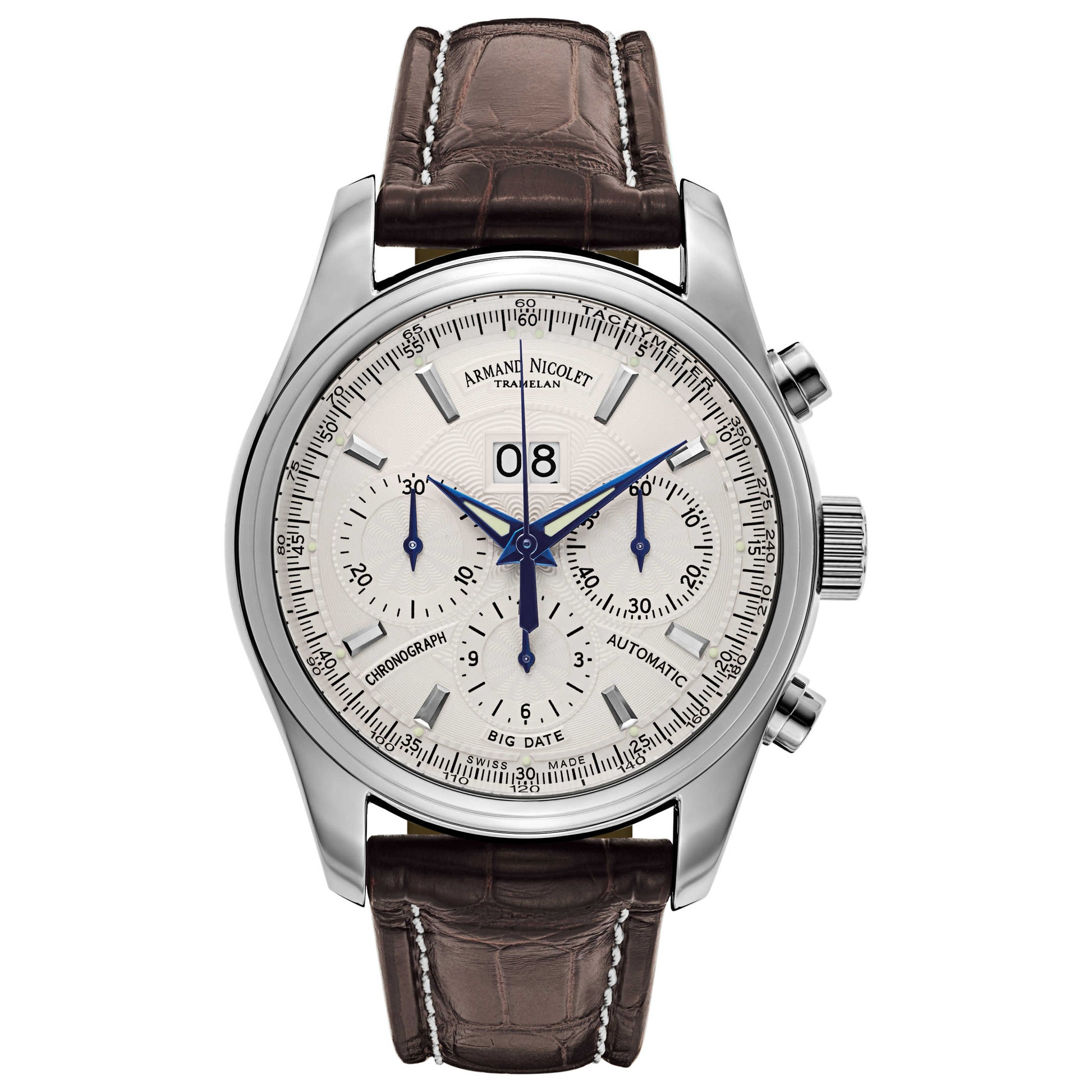 Armand Nicolet, M02, Men's Watch, Stainless Steel Case, Leather Alligator Strap, Swiss Mechanical Automatic (Self-Winding), 9648A-AG-P974MR2