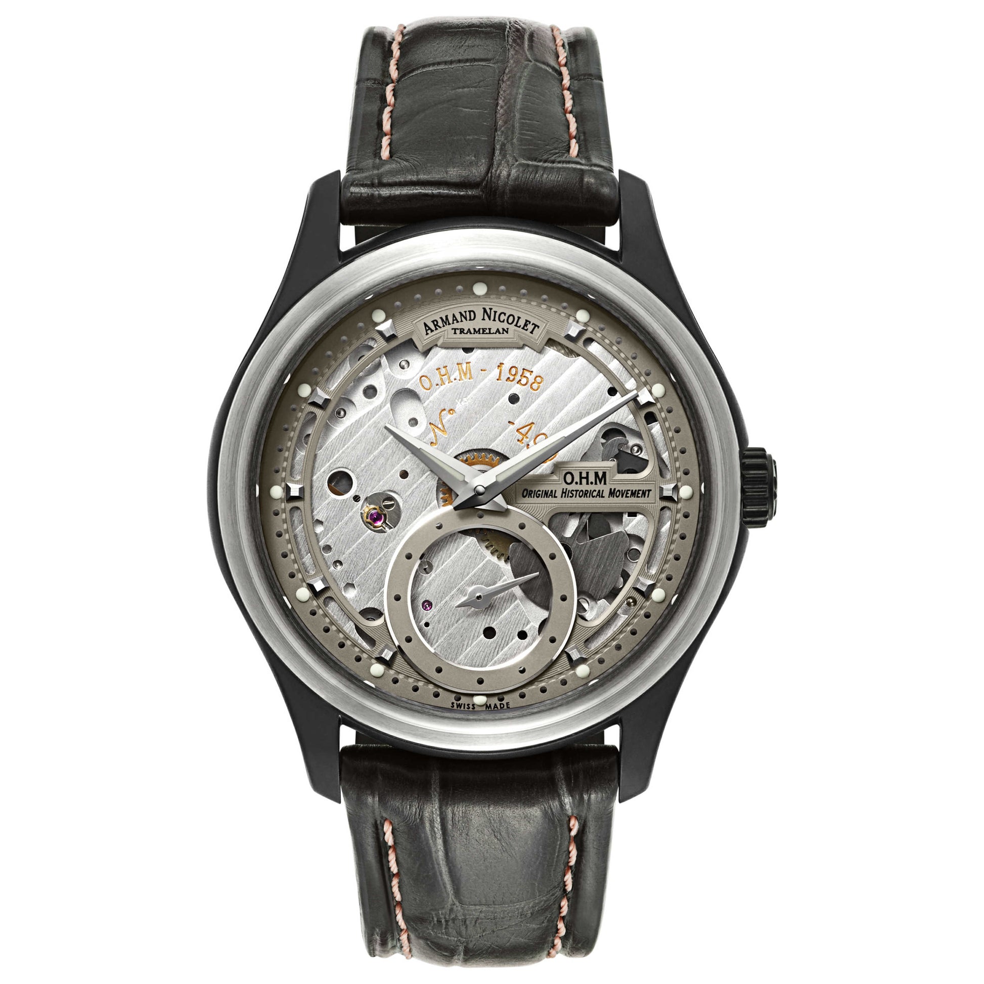 Armand Nicolet, L14, Men's Watch, Stainless Steel and Black DLC Coating Case, Leather Alligator Strap, Swiss Mechanical Manual (Hand-Winding), A750ANA-GR-P713GS2