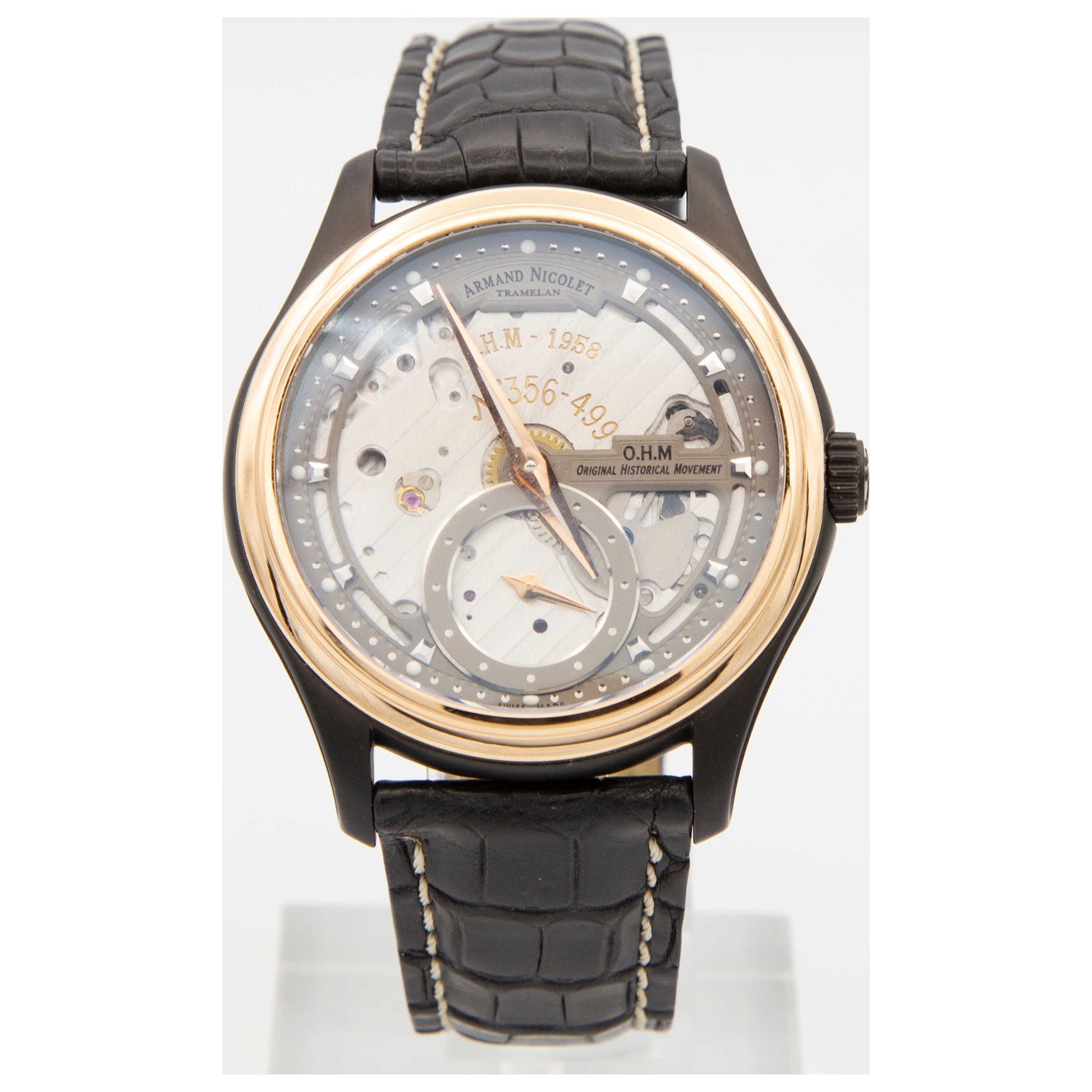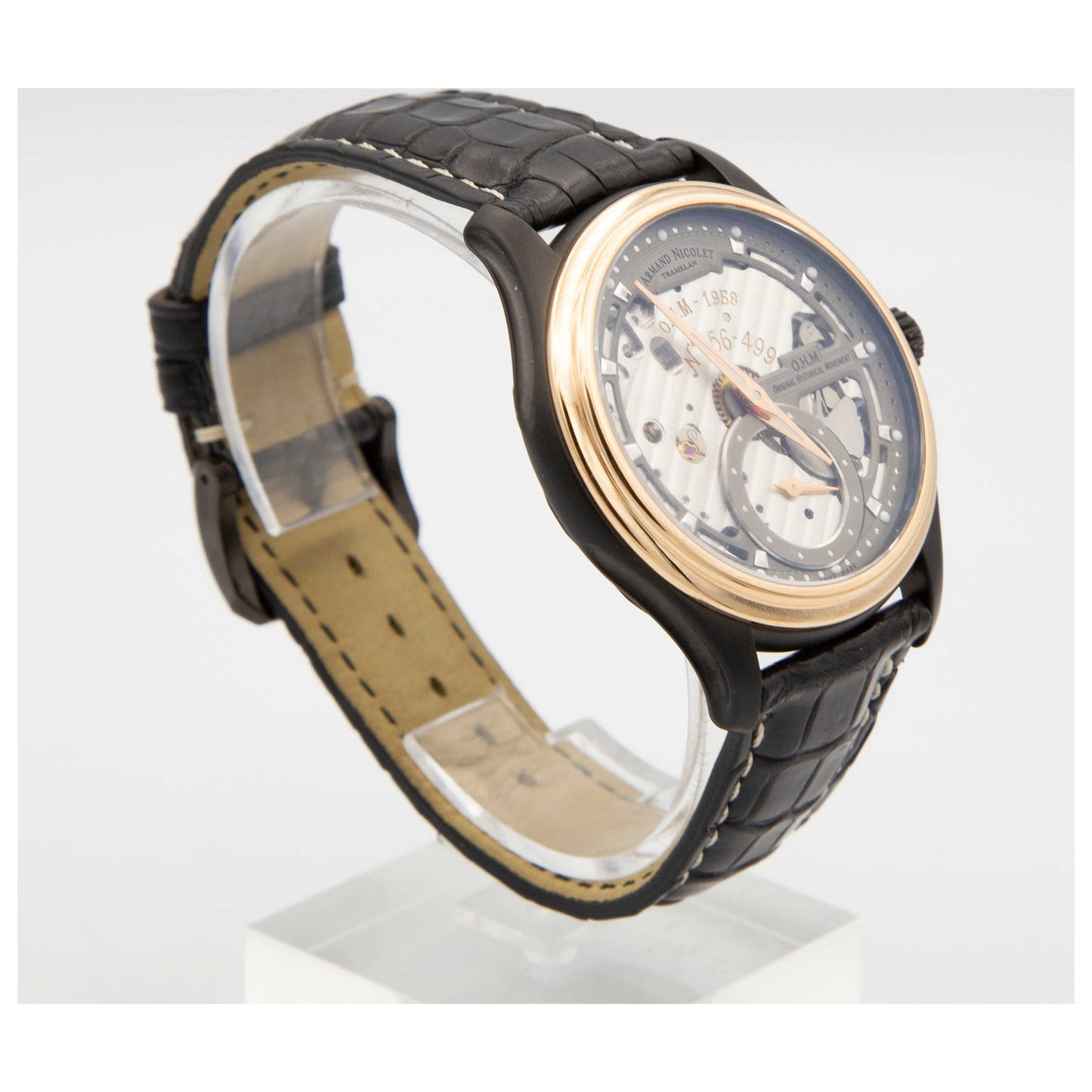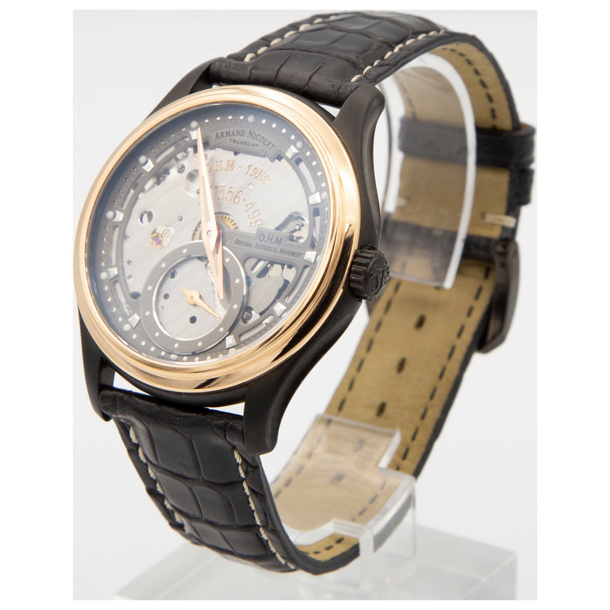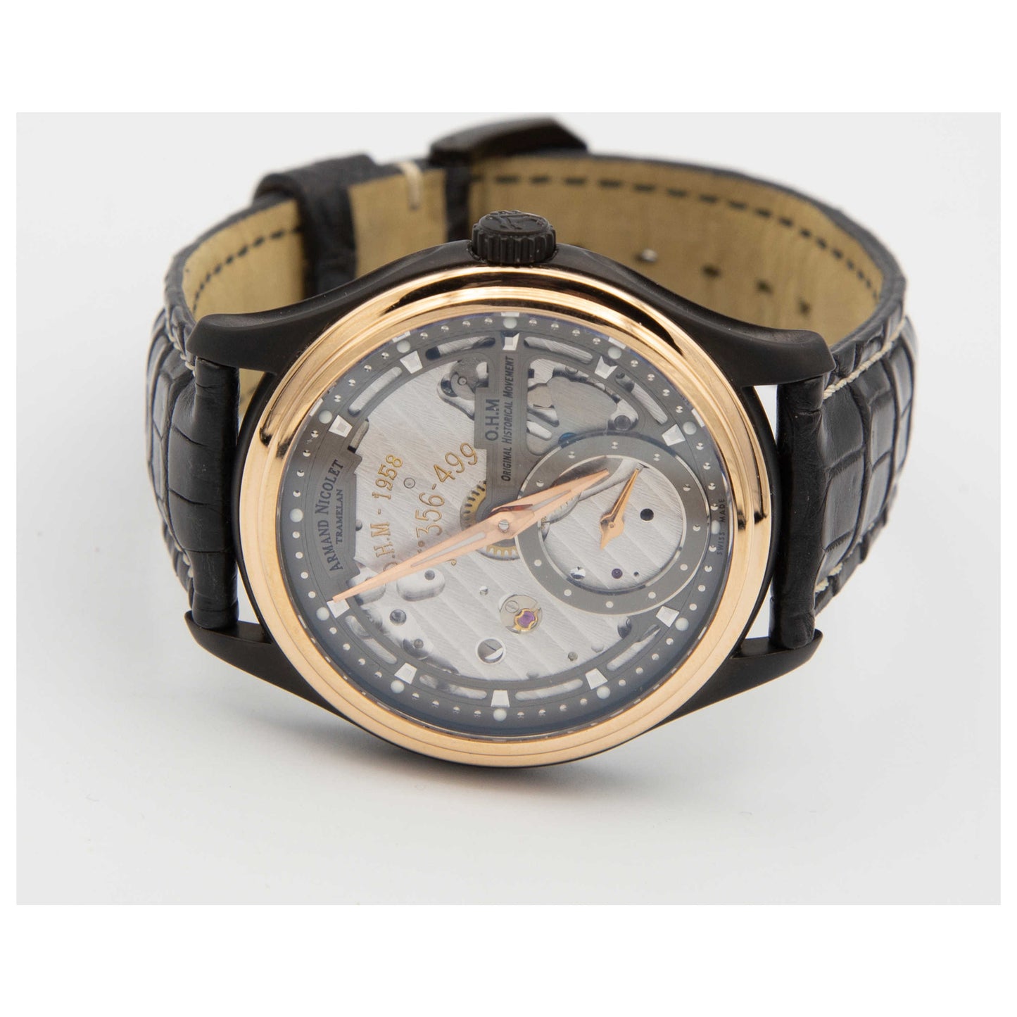 Armand Nicolet, L14, Men's Watch, Stainless Steel Black DLC Coating Case, Leather Alligator Strap, Swiss Mechanical Manual (Hand-Winding), D750ANAGRP713NR2-SDV