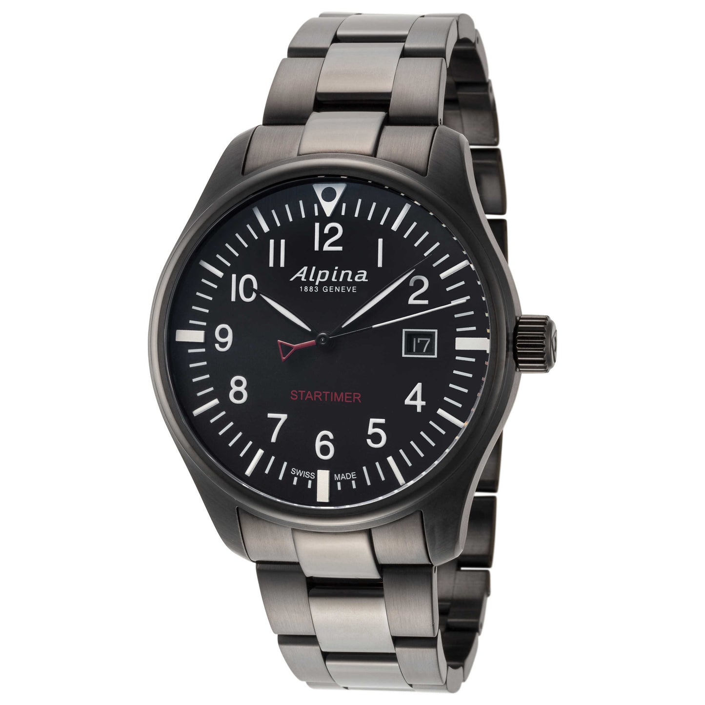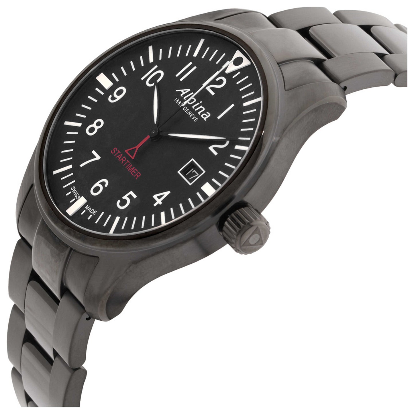 Alpina, Startimer Pilot, Men's Watch, Stainless Steel Case, Stainless Steel Bracelet, Quartz, AL-240B4FBS6B