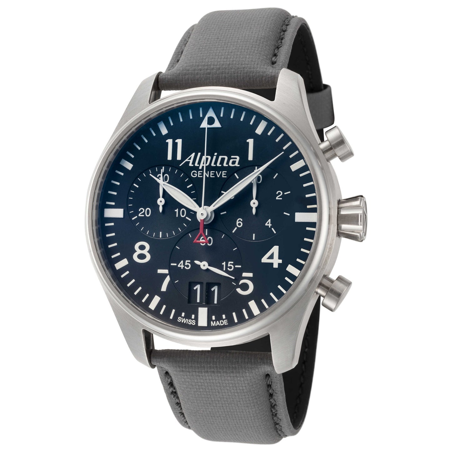 Alpina, Startimer Pilot, Men's Watch, Stainless Steel Case, Leather Strap, Quartz, AL-372B4S6