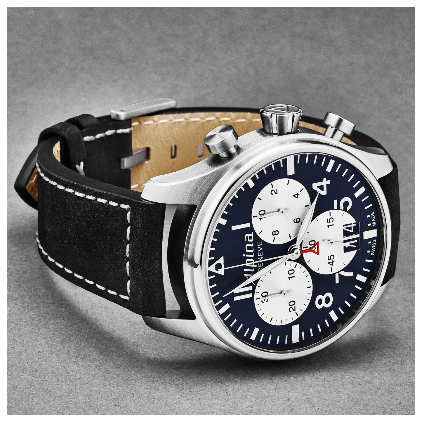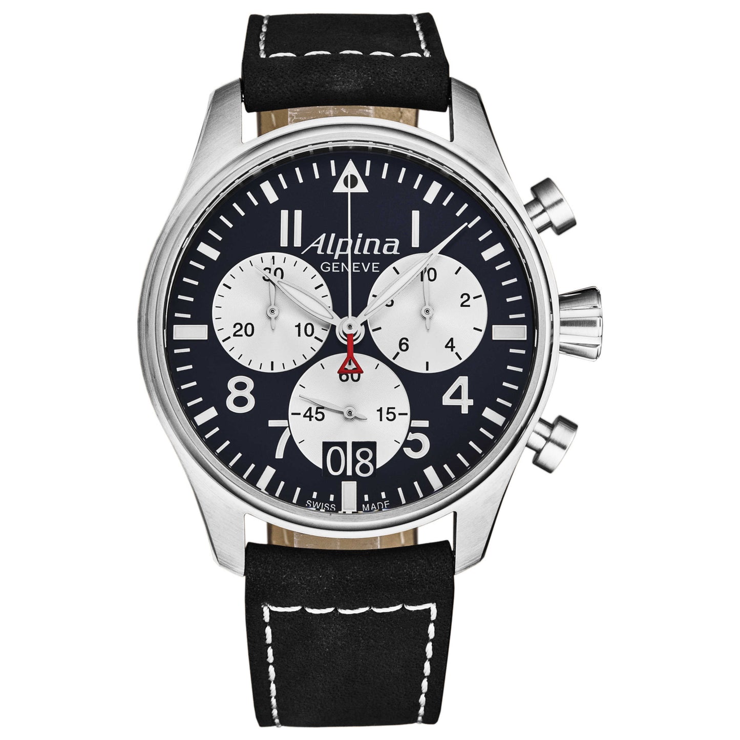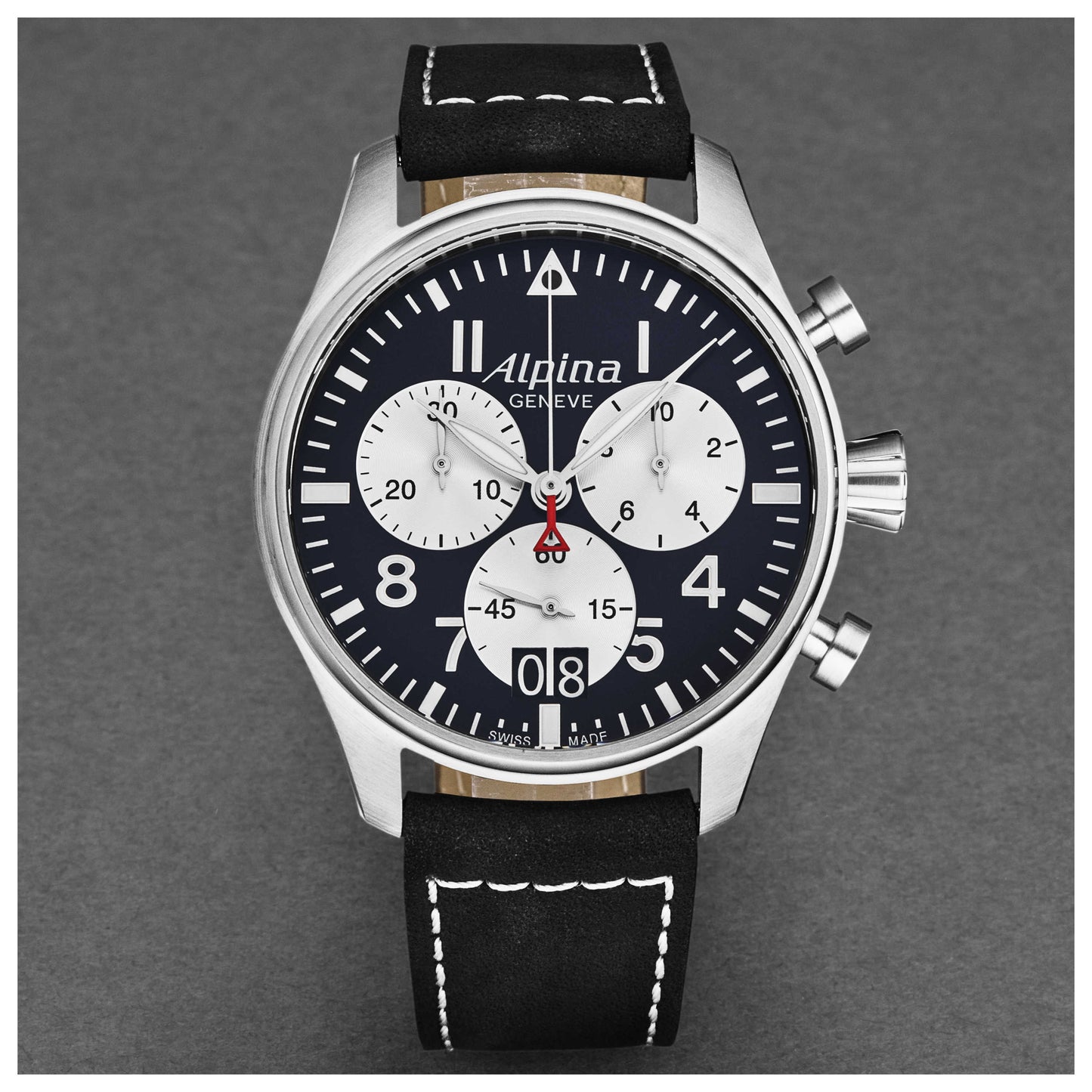 Alpina, Startimer Pilot, Men's Watch, Stainless Steel Case, Leather Strap, Quartz, AL372NS4S6