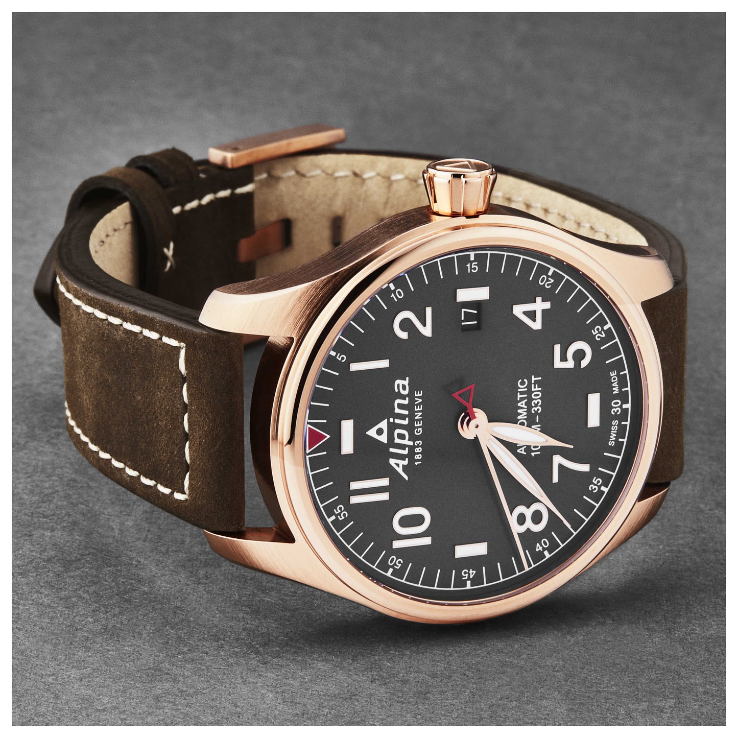 Alpina, Startimer Pilot, Men's Watch, Stainless Steel Case, Leather Strap, Automatic, AL525G3S4