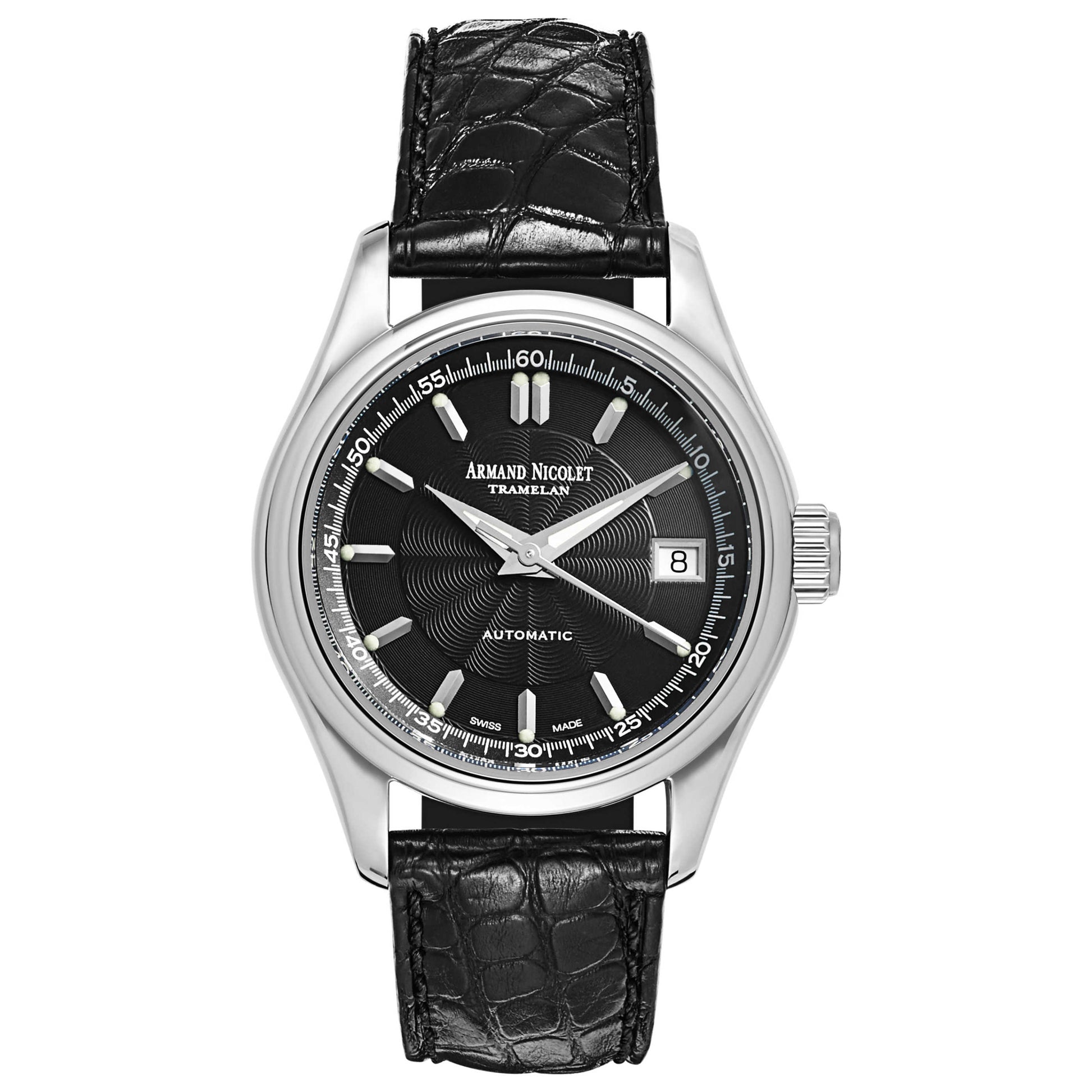 Armand Nicolet, Hunter Date, Men's Watch, Stainless Steel Case, Leather Alligator Strap, Swiss Mechanical Automatic (Self-Winding), 9040A-1-NR-P940NR9