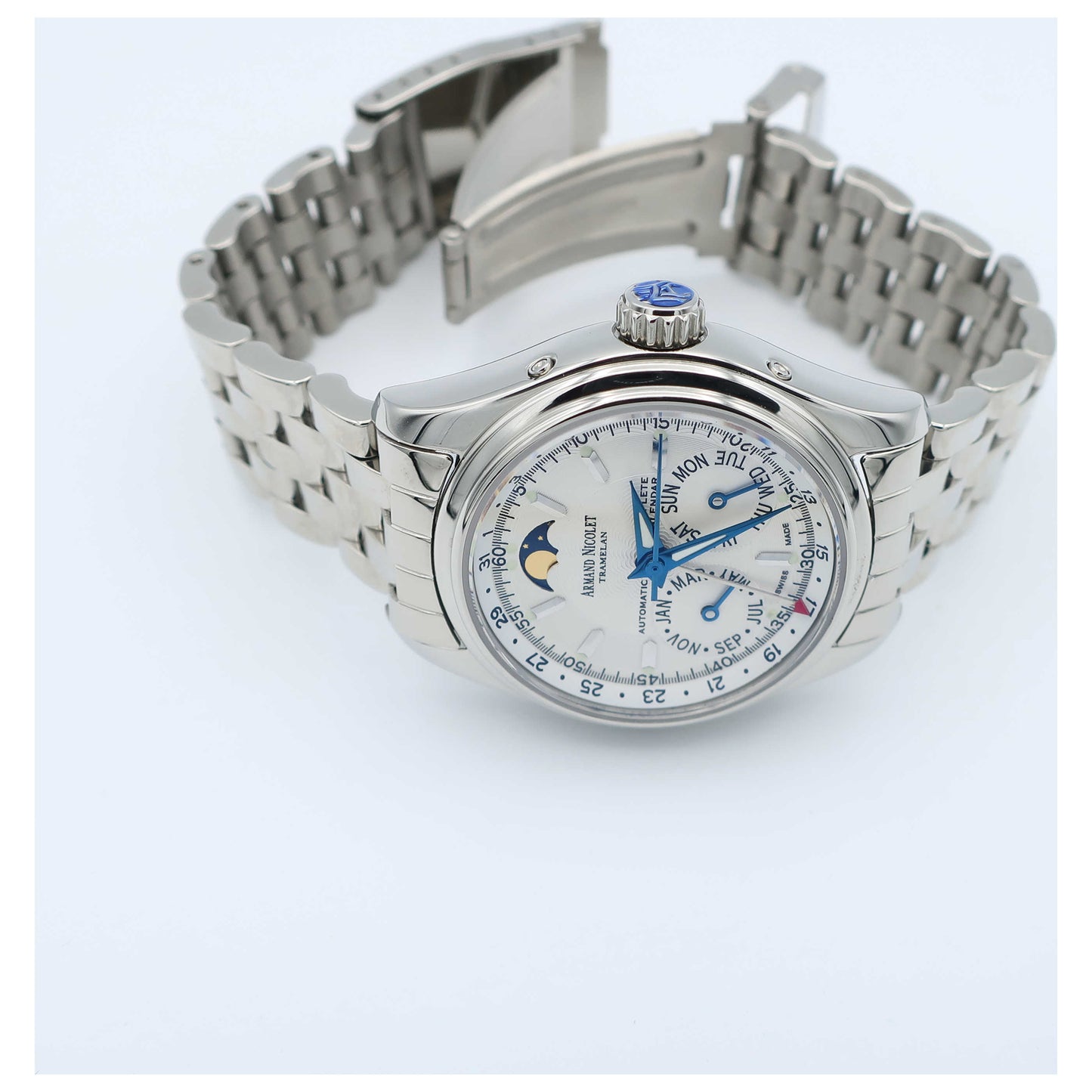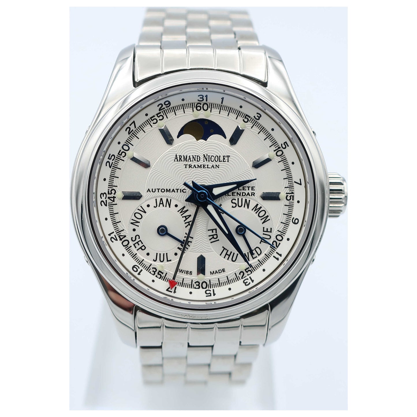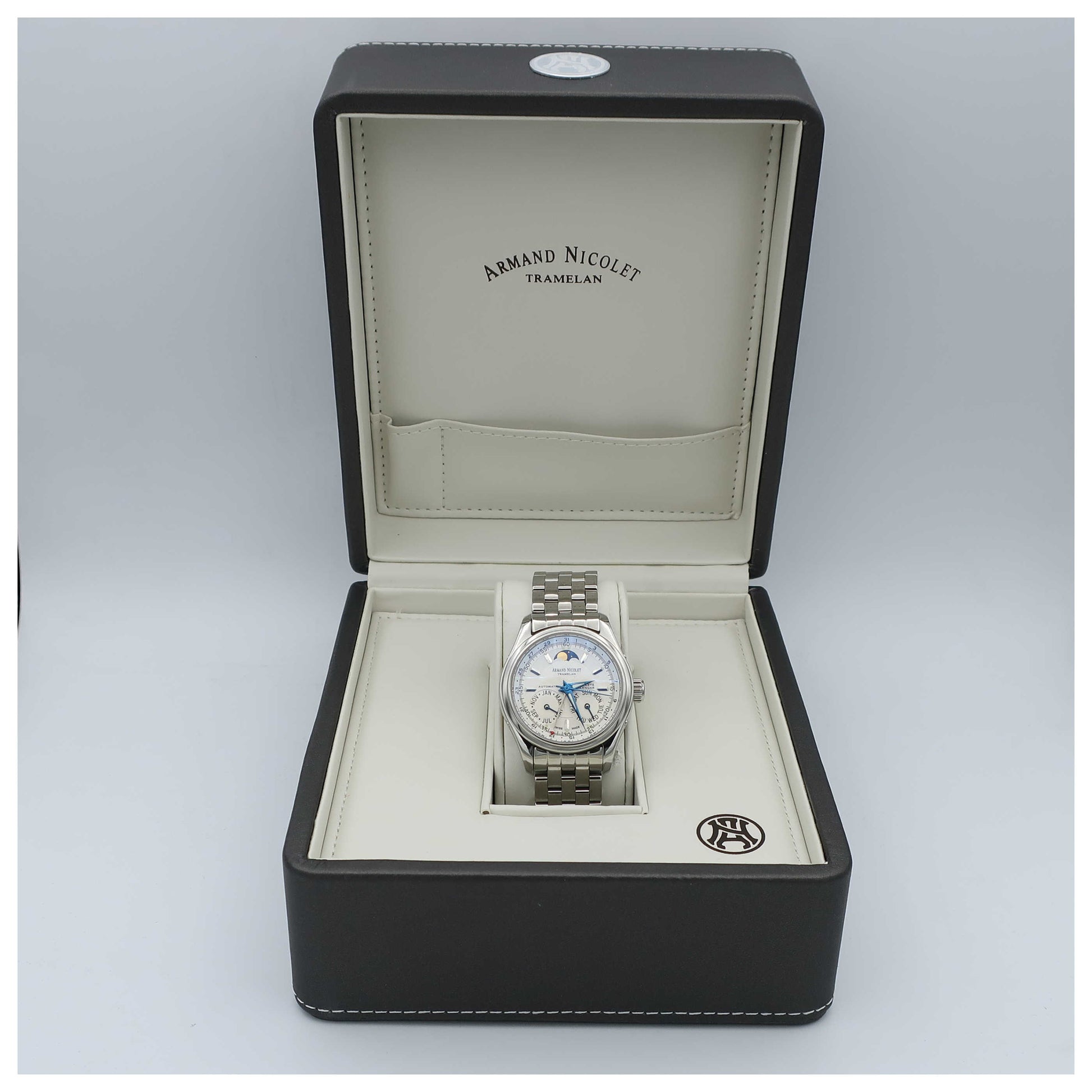 Armand Nicolet, Hunter Complete Calendar, Men's Watch, Stainless Steel Case, Stainless Steel Bracelet, Swiss Mechanical Automatic (Self-Winding), 9042B-1-AG-M9060-SD